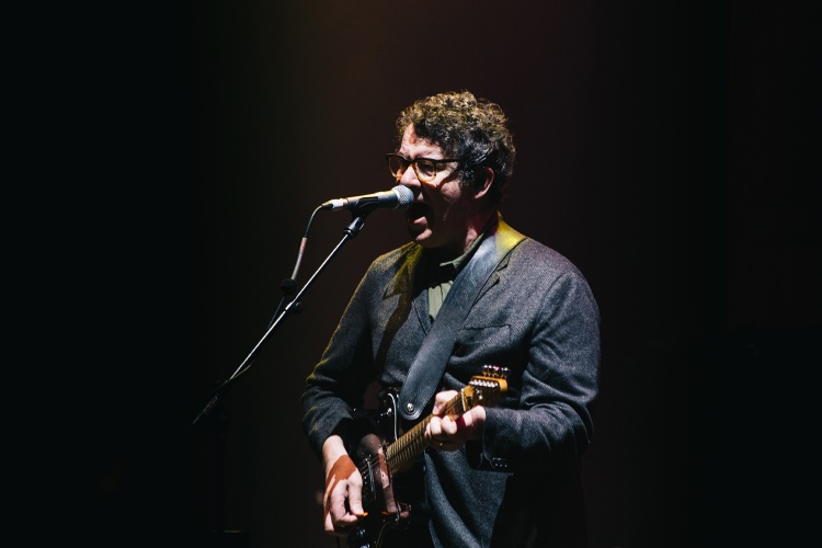Variadas proyecciones de imágenes de archivo, grabaciones personales en súper 8, ilustraciones o texturas, acompañaban en una gran pantalla trasera cada una de las composiciones. Se sentó a pie del escenario acercando la cara al los móviles que le grababan con “Piazza, New York Catcher”. Nos emocionamos con “Ease Your Feet In The Sea” –tan poco habitual en su repertorio en directo–, o “The Fox in the Snow”, que llenó el Kursaal de luminosos copos de luz. Agitamos pizpiretamente la cabeza y dimos palmas con “So In The Moment” o “To Be Myself Completely” y enloquecimos cuando sonó “Wrapped Up In Books” y nuestro frontman favorito subió corriendo las escaleras del auditorio (¡sin dejar de cantar, oiga!) para bailar junto a unos fans de la última fila y bajar después al galope por la otra escalera dejando a su paso todo el recinto bailando.