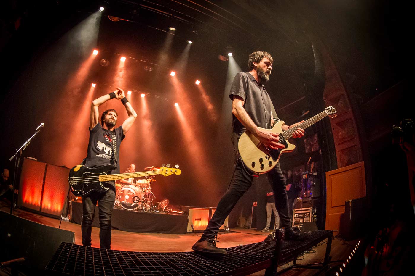 El concierto empezaría con 13 minutos de retraso, aparentemente por algún problema con la batería. Para entonces, el público había empezado a corear el “Ellos dicen mierda” de La Polla Records, grupo noticia de última hora por su anunciada vuelta a los escenarios y, según sabríamos dos días después, notición de publicación de nuevo disco con material nuevo. Saltaron, por fin, los tres protagonistas de la noche con total naturalidad: Gorka a la voz y a la guitarra, único miembro original. David González (Pi.L.T., Cobra) al bajo y Galder Izagirre (Dut, Kuraia) a la batería. Sin aspavientos, con la humildad que les caracteriza, se colocaron en sus puestos para atacar con “Beude” de su último disco “Infrasoinuak” (Only In Dreams, 2017), del que caerían unos cuantos, y comenzó un bombardeo de sensaciones y de emociones. Con una puesta en escena discreta, pero 100 % honesta y auténtica, se mostraron rabiosos y poderosos sobre las tablas. Acometieron con la primera incursión en “Jaio. Musika. Hil” (Gor, 2005), el disco que lo cambió todo, y lo hicieron por medio de “Iparra galdu: hegora joan” y la propia “Jaio. Musika. Hil”, cuando aquello ya pareció venirse abajo.