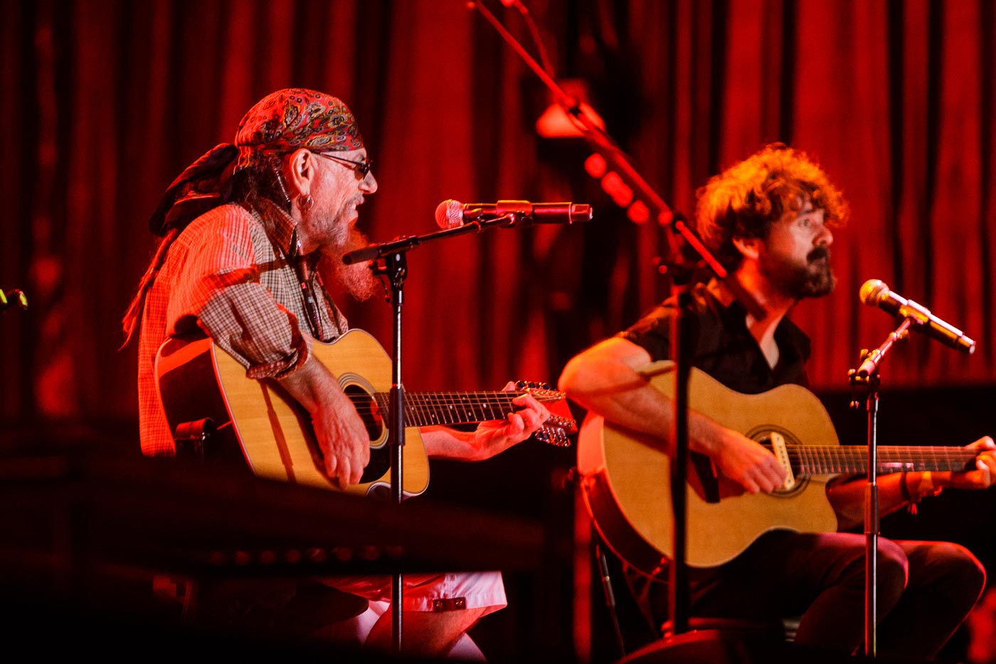 "Betiko leloaren betiko leloa" fue la canción elegida para que Facu Díaz nos sorprendiera gratamente a la batería, ajustándose las gafas y soportando con entereza la tensión del ambiente, acompañado por Antonio "Toni" Mejías, que metió alguna estrofa en castellano en una canción que deja un escueto margen a la improvisación. Unas notas sueltas actuaron como resorte para que levantásemos las manos al cielo en "Eskuak", que acogió la colaboración de Leire Iseo, seguida de "Biziraun".