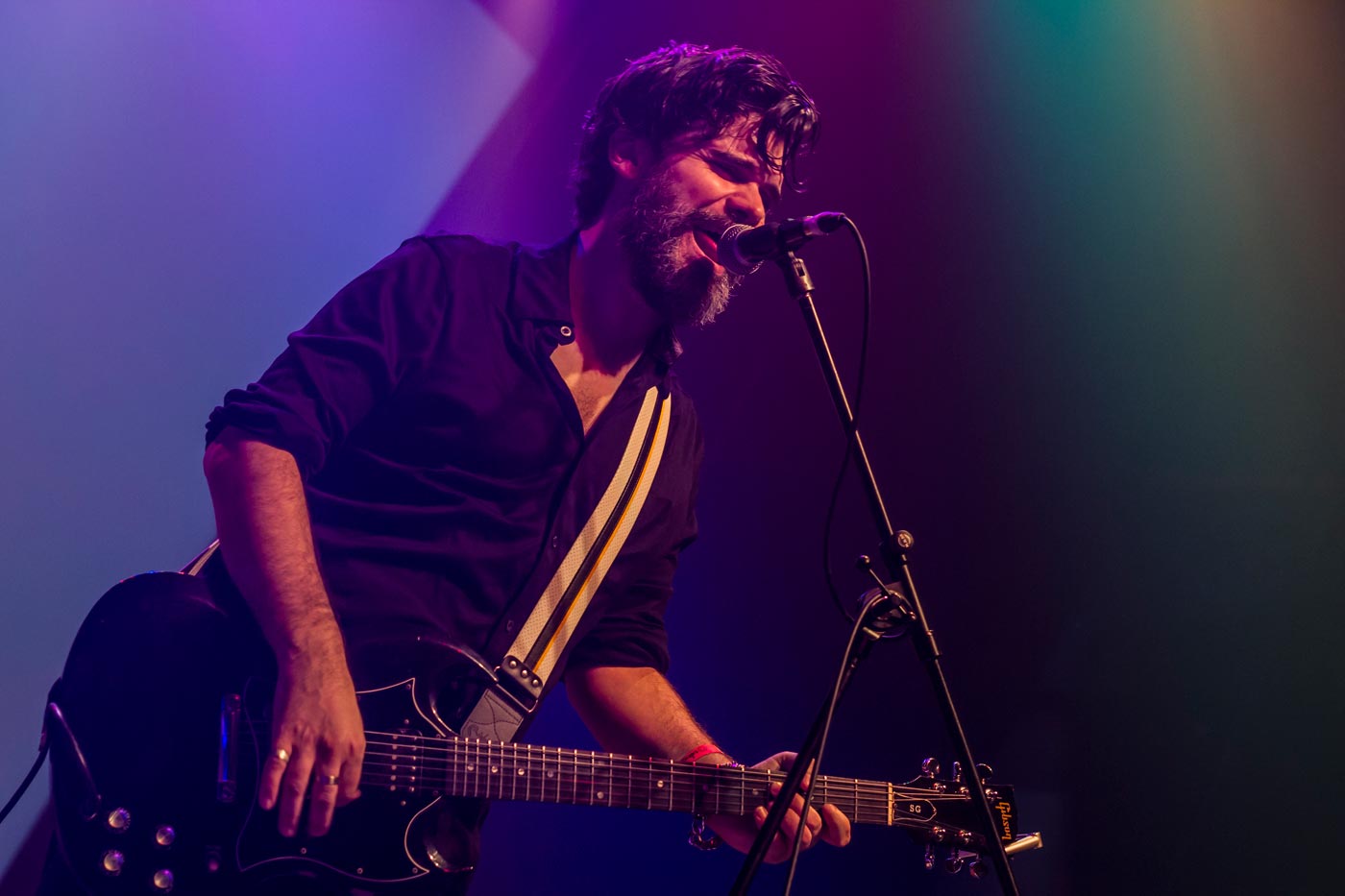 La velada comienza con un público a medio gas cuando el trío Cavaliere (foto inferior) irrumpe en escena. Poderosos riffs caleidoscópicos, bases que van del blues-rock al stoner. En definitiva, rock arácnido que te atrapa sin ambages. El conjunto tiene tablas suficientes como para comerse el escenario del Kafe Antzokia con solvencia. El cantante y guitarra Álvaro Segovia, ex Atom Rhumba, ha participado en numerosos proyectos y le hemos visto colaborar por ejemplo junto a Abraham Boba -telonearon a León Benavente el pasado mes de enero en esta misma sala-. Decidió aliarse con “el genio de la percusión, matemático a tiempo parcial y coronel de francotiradores” Galder Creo (Bilillo y Los Sullos, Penadas por la Ley, Adam Giles Levy…). Poco después se les uniría al bajo otro viejo conocido de la escena alternativa vizcaína: Eneko Cepeda. Desgranan los temas de su EP, Vol. 1, con franqueza, precisión y mala leche, contenida y desatada en función del momento. Segovia tira de product placement y nos recuerda que son “Cavaliere, de Bilbao” al término de cada canción. Con chulería típica de frontman, también nos pregunta si tiene bien el pelo. La verdad es que no se despeina.