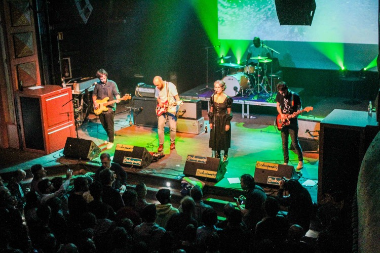 La línea de bajo de Luis produjo sonidos arraigados en el punk de Eskorbuto mientras las guitarras de Jorge y Manu acompañaron con punteos brillantes al tiempo que se sumían en delays sucios de noise recordando al post punk de Joy Division y el pop oscuro de Triangulo de Amor Bizarro. La batería se mantuvo fresca aunque escuchamos algún descompás sin importancia. Tema tras tema, sin descansar sonaron “Dos policías”, “Viva” y una calma nocturna arropó la sala Antzoki con “Estrella distante”.