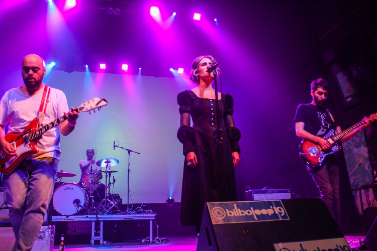 Tras un descanso y pasadas las once de la noche, comenzó el bolo de Los Punsetes. La sala rebosaba miradas ansiosas y ovaciones por esta banda tan característica y con una trayectoria marcada por su estilo único dentro del pop más ácido. Los madrileños también estrenan su último LP "Aniquilación" (Mushroom Pillow, 2019) pero fue inevitable escuchar temas míticos de su discografía. Entre los primeros cortes destacaron “Vas hablando mal de mi” que el público se encargó de corear a gusto. Destaquemos positivamente la alta participación de coros en este bolo de Bilboloop. El efecto sensorial que produce el sonido pop, noise e incluso grunge con el que culminan todos los temas se hace irresistible con la imagen de Ariadna Paniagua impertérrita detrás del micrófono. La atmósfera psicodélica, naif e irreverente se construyó sola cuando escuchanos los mensajes directos que descargaron en “Idiota” con una mezcla de condescencia y vena candy punk: "Con lo tonta que es la gente y la de gente que hay, que va de guay. Estadísticamente lo más prudente es aceptar que, a lo mejor, soy idiota".