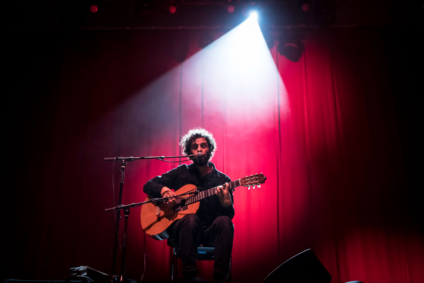 Esperábamos al cantautor sueco-argentino José González (foto inferior) arropado por una orquesta pero nos encontramos con un escenario con una banqueta, un micro y dos guitarras clásicas. Jose arrancó el solo con una magia indescriptible y arpegiados que describían bucles que inducían a al trance. Haciendo fácil lo difícil y ante una audiencia silenciosa, muy receptiva y respetuosa en un escenario antzerki menos intimista , por la distancia de la grada al escenario, desgrano temas de sus tres discos en solitario Destacaron sobre todo los temas de “Veneer” e “In your Nature” empezando por “Lovestain”, o una muy intensa “Crosses”. Agradeció tímido y en castellano los merecidos aplausos y comenzó a concatenar hits como sin prisa despachando, temazo tras temazo, una “Vestiges and Claws” con un final extendido y africanizado muy venido arriba, una “Down The Line” muy percutiva y una “Cyclin Trivialities” preciosa e intima. Con la versión de Massive Attack “Teardrop” recrea el ambiente de la original con el mínimo de elementos pero sonando máximalista, la gente aplaudió como si no hubiera un mañana. En la recta final encandiló con una “Killing for love” también africanizada en su final y termino con una preciosa “Heartbeats” en unos bises muy solicitados. José el mago.