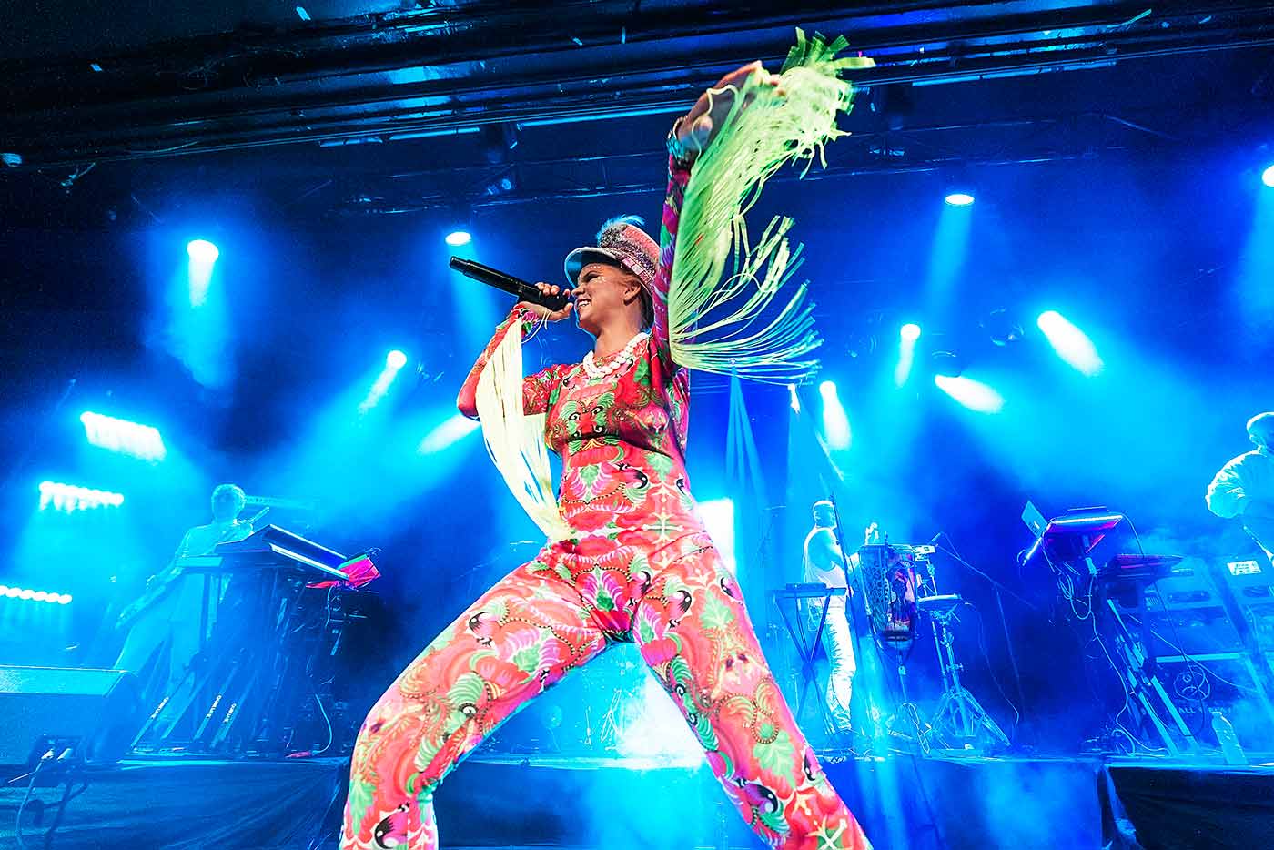 La falta de puesta en escena, dio como resultado un espectáculo más parecido al de una orquesta de pueblo que al de una prestigiosa banda internacional. Aún así, reconozcamos que la propuesta resultó eficaz para todos los asistentes. Y en el segundo bloque de la noche sí que vimos a una Li juguetona, más cañera y divertida. El momento más potente y entrañable de la cita llegó con la subida al escenario de una pequeña de 11 años que la líder había visto en El Retiro bailar y decidió invitarla a formar parte del espectáculo. “En cada lugar del mundo hay una niña que me recuerda a mi infancia. Ayer conocí a Candela y no pude evitar traerla para interpretar “Soy Yo” con ella”. La razón del éxito de los directos de Bomba Estéreo es, sin duda alguna, su imparable repertorio repleto de hits que hacen arder la pista de baile. El público coreó y bailó hasta los temas menos conocidos de “Ayo”, el álbum que ha lanzado la banda recientemente. Eso sí, el gran error del grupo fue no darle a “Fuego” el espacio que se merecía dentro del setlist y dejarlo finalmente para utilizarlo como una especie de cierre acústico tras las súplicas de los fans que no favoreció a la canción original, nos calentó y nos dejó medias.