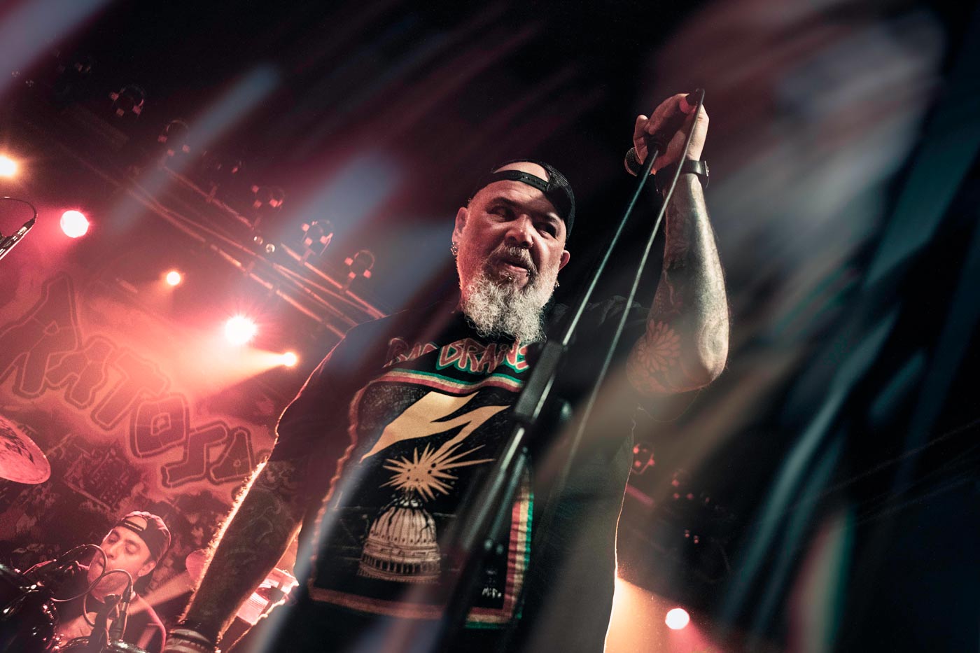 Conforme avanzaba el concierto de los de São Paulo, el público entraba en calor cantando letras de temas míticos como “Farsa Nacionalista”. No faltaron tampoco algunos más actuales, como “Grande Bosta”. Este tándem de épocas, en conjunto hacía percibir un evidente cambio en el estilo, que ha ido evolucionando a lo largo de su trayectoria; no lo han hecho, en cambio, sus letras reivindicativas. Con el riff que da comienzo a su tema “Pensamentos de Trincheira”, de la década más punk de la banda, el actual bajista Juninho, y el guitarra Jão, que lleva en la banda desde sus inicios, daban un respiro al vocalista. Sin duda alguna, cuando sonó “Beber Até Morrer”, quedaba claro que es uno de sus míticos, por la influencia en los asistentes. El colofón final lo ponían con “Crise Geral”.