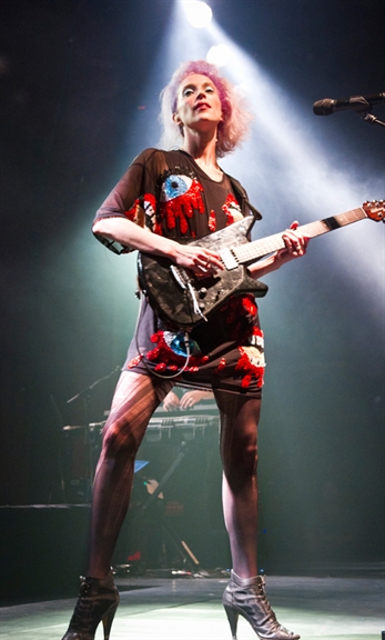 Sinuosa, elegante, escurridiza e incluso altiva. Clark se mueve entre prototipos, desacreditando precisamente a los que la tachan de estereotipada: juega a ser David Byrne, Madonna, Björk o PJ Harvey. Desde la coreografía inicial, casi autómata y de ejecución fría, el espectáculo se sucede entre transformismos. Si bien en los paisajes duros, cuando muestra agallas y voluntad de ruido, impresiona más ("Chearleader"), es en las partes atmosféricas –menos digeribles a priori un martes a las nueve tras una jornada en el tajo– donde más brilla lo sutil de la propuesta. Entre medias, el attrezzo justo: distorsión efectiva, registro vocal amplio y riffs más asumibles que la tabla del uno, aunque dispuestos con ingenio. Ni una nota más ni una menos.