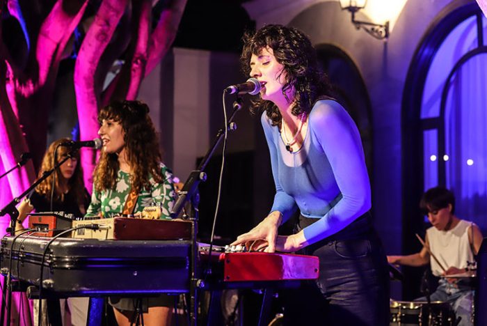 Y ahora sí, salen a escena Oihana, Leire, María y Lauri, las pamplonesas Melenas, que, en pocos segundos, con una conexión total, se meten al público en el bolsillo a base de un adictivo cóctel de pop-punk, garage y envolvente psicodelia. Una luminosa y multicolor bruma sintetizada que no nos deja tocar el suelo, de inicio a fin. De la onírica “No puedo pensar (en nada más)”, que nos hurga la herida muy pronto y muy adentro, a la espacial y compañera de surcos “3 segundos”, pasando por la magnética lisergia de teclados de “Oso Polar” o la muy ganadora “Bang”, con la que alcanzamos uno de los clímax bailongos de la velada.