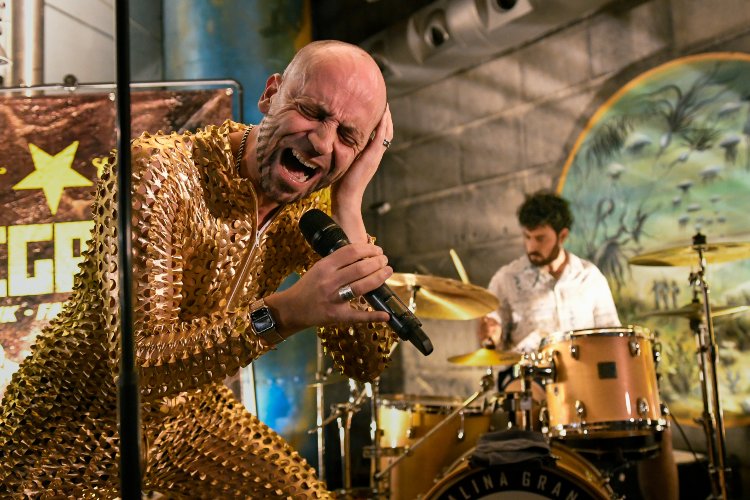Nos confiesan sus grandes referencias musicales, mencionando de pasada a los Tiparrakers, Oveja Modorra, Dua Lipa y la Orquesta Panorama, y hasta trascienden lo musical para hablarnos de grandes modelos a imitar, como Rafa Nadal. Al que mientan, como los otros mentaban a Schumacher, en “Véndeme el Kia”. Aquí es fina la ironía y en otras es sentido el homenaje, tanto al abuelo en “Las cosas de mi abuelo” (brindando con un orinal) como a su padre en “Riñones de leche” (y canta sentando en la barra después de reivindicar las letras, diciendo que son un cruce entre Walt Whitman y Norma Duval). Verderón no se cansa, pero descansa para recuperar el resuello porque, como explica, “esto es cardio para mí”. Ya puesto, aprovecha para contarnos el problema que tiene con la escritura cuneiforme de los hosteleros de su pueblo. Al batería le manda a por el cartel, para que lo entendamos bien, y con todos los helados ahí expuestos comprendemos qué mal lo debe pasar para entender qué puede elegir: “El cartel de los helaos”. Son historias localistas con aroma universal. Llegan a la patata, y no estoy de coña. Otras tienen trasfondo social, como “Ropa de mercao”. Alguna alcanza marchamo de himno, como “Los de la capi”, que la camiseta ya se hizo viral, y la frase te la puedes tatuar en el occipital. Recuperan, dicen, un clásico, “Cáncer a granel”, mientras nos pide que alcemos los chatos y nos da la bienvenida al punk fandango. Todos los que estamos allí dentro lo celebramos. Luego lo dejan claro, que son ellos y no Loquillo: “Yo soy el Rock and Roll”.
