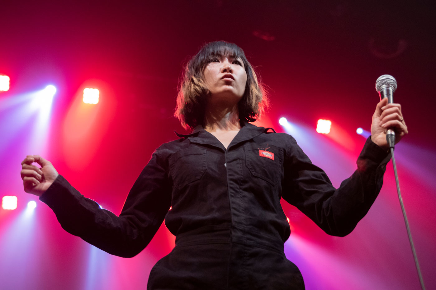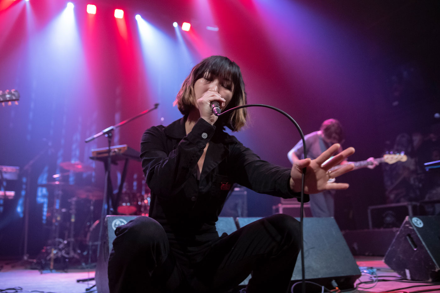 Salieron puntuales al escenario los angelinos Second Still. Ryan a la guitarra, Alex al bajo y Suki a las voces, teclados y bases dejaron claro desde el principio que su sonido emana de la época dorada del post-punk, cuando los sintes y las cajas de ritmo se democratizaron y surgió lo que ahora llamamos coldwave. En la línea de otros revivalistas postmodernos como Nao Katafuchi, el romanticismo robótico que supuraban los primeros singles de Depeche Mode empapa su sonido y melodías. Se agradece la entrega de Suki, que acompaña con su cuerpo el ritmo que energéticamente emana de sus manos, pero sin llegar al histrionismo y la flagelación de John Maus. Las líneas de bajo se meten bajo nuestra piel y las guitarras brillan en olas melódicas undulantes, que a veces culminan en pasajes de feedback ruidoso a lo The Jesus & Mary Chain mientras la machacona caja de ritmo golpea nuestras entrañas sin compasión remitiendo al pop industrial de Liasons Dangereuses, por ejemplo. Si bien es cierto que Siousxie & The Banshees podría ser el referente más claro, en los momentos más roqueros podríamos imaginar a Billy Idol actuando en un afterhours con Bauhaus de banda acompañante. 45 minutos intensos en los que finalmente lograron ganarse a un público que, con su insufrible cháchara, mostró muy poco respeto por los teloneros y los demás espectadores interesados en escuchar su actuación.