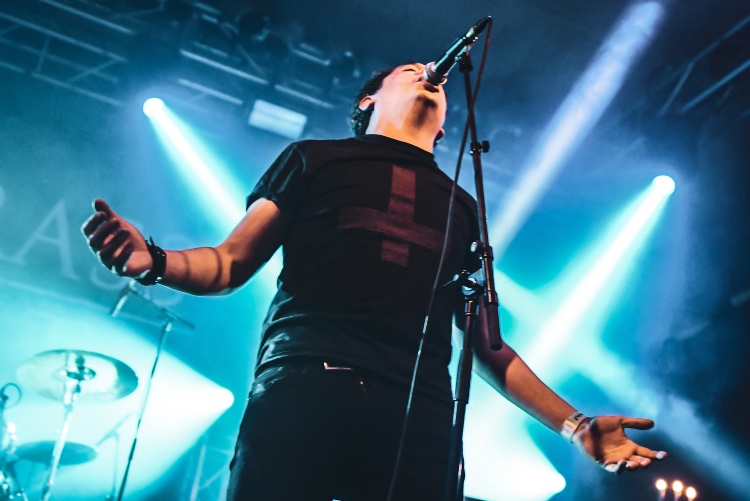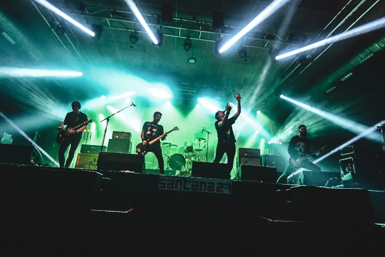 La parroquia respondió a la llamada, y para cuando IKARASS tomaron puntualmente el escenario, la sala Santana 27 lucía con todos los asientos llenos y una calma tensa en el ambiente. Un ambiente que se volvió ritual con el azul y rojo de las luces y dos candelabros sobre los monitores flanqueando la escena, mientras los músicos entonaban un salmo de drones, desgranados con un vibrador de cuerdas y samples disparados que servirían de hilo conductor durante todo el recital. Un telón a modo de retablo reza el nombre del grupo y la palabra "CVLT" en mayúsculas, subrayando esa unidad que los emparenta con el Amiticia Fortior (lat. la amistad es más fuerte) que sirve de lema al colectivo sueco Church Of Ra; y que demuestran bajista y guitarras moviéndose al unísono en todo momento, tribales, todavía sin una voz que oficie desde el micrófono vacío que los preside. El sonido del bombo y la caja es grande como una catedral (Xanpe, productor de ambos grupos, ejercía esa tarde de técnico también para los dos, con la maestría que conlleva conocer tan a fondo su sonido) en la que a los cinco minutos se hace eco el silencio, para pasar a un medio tiempo de retazos post-rock a modo de presentación del cantante. Con la capucha de la sudadera puesta cual monje de alguna oscura hermandad, se acerca lentamente al centro para romper esa tensión que tan bien son capaces de construir, con un alarido que atraviesa la sala junto a cañones de luz blanca. La agonía de su voz parece un martillo remachando las vigas de un polígono industrial de nombre "Vertikal", apuntaladas con los graves que salen de los amplificadores y la batería sirviendo de cemento de esa pared que estructura su propuesta. De Cult Of Luna a Amenra a un golpe de crash, con el cantante de rodillas, penitente, y los coros del bajista sustituyendo al delay de la voz principal mientras generan dinámicas para escapar a la repetición del doom. Oscuridad constante, a ratos cercana al post-punk más dark, para un rito en el que expían el constante sufrimiento que transmiten las letras y que te hace sentir parte de una homilía de redención.