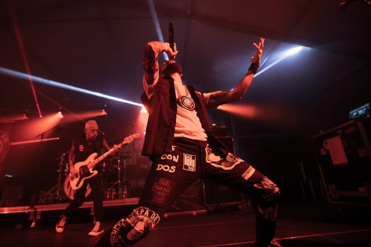 Y después de un pequeño descanso para refrigerios y estiramientos, con dos minutos de adelanto, según mi reloj, aparecen los Def Con Dos, que ya vienen saltando, asperjados por el escenario como estelas de reactores. La gente abajo parece entusiasmada. La media de edad es alta, excepto la niña que lo ve subida a lomos de su padre y que hace cuernos mejor que nosotros. Hasta las voces enlatadas parecen trasportarnos a tiempos pasados, no sé si mejores o peores, pero lejanos. Treinta años, que lo recordarán ellos en repetidas ocasiones: treinta años de lucha contra la estupidez.