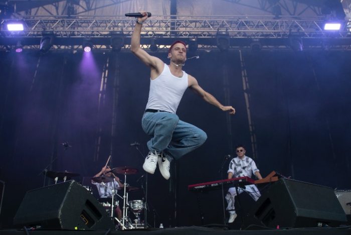 WOS se encargó de abrir la jornada en el escenario Txiki con unos 20 minutos de retraso debido, según deducimos, a una fuga de agua que hubo en los servicios contiguos y que necesitaron de diversos operarios para secar la zona de debajo del escenario y parte de las primeras filas donde se encontraba un público impaciente. El artista argentino era (y es) uno de los más destacados freestylers de habla hispana, llegando a la cima en 2018 al convertirse en campeón de la batalla internacional de Red Bull. Poco tiempo después se enfocó exclusivamente en su carrera musical, y ya ha dejado dos discos para felicidad de su legión de fans de ambos lados del charco. Con una banda “rockera” formada por batería, bajo, guitarra y teclado, fue dejando en poco más de 35 minutos algunos de sus temas destacados. No faltó una pieza al estilo RATM en lo musical para mostrar su destreza improvisando. Sonaron de un tirón desde la reivindicativa en formato acústico “Arráncamelo”, el rap rock de “Canguro” o la melosa “Alma dinamita”, hasta “Púrpura” ya como cierre, con grupo y público saltando al unísono.