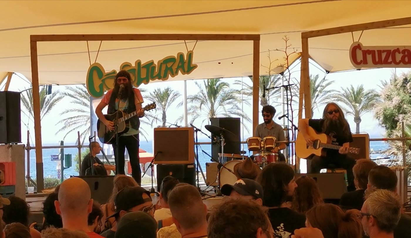 Sin apenas fuerzas tras una intensa noche, recorrer los escenarios playa y ciudad se hacía tarea imposible por lo que, elegir un buen sitio para pasar el calor del medio día se hacía tarea difícil y situarnos bajo la carpa playera para bailar con todo el “ruido arizónico” de Arizona Baby se convirtió en una opción de lo más recomendable a la vista del enorme espectáculo que volvieron a dar los pucelanos, siempre en forma y dispuestos a liarla en pro de la paz, el amor y los buenos festivales. Se agradecieron los micro aspersores que dispensaron un socorrido rocío marinero.