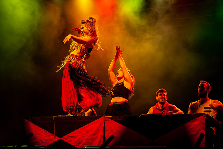 El sábado tuvo mucho de flamenco. El primer artista del día fue Cristian de Moret. Su estilo es peculiar, nada que no se supiéramos ya de este artistas multidisciplinar, pero consiguió conquistar a los presentes. Fue una de las mayores sorpresas de EtnoSur 2022. Su “Soleá Groove” y su “Leyenda del Tiempo” llamó la atención e hizo que más de uno sacara su teléfono para anotar lo que después quería buscar en casa.