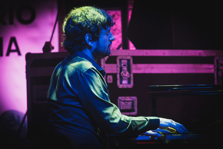 El viernes atardece con el terral aún serpenteando en el aire y el camino al castillo (de nuevo sold out) se antoja etapa de montaña. Los sudores y abanicos de colores marcan la oscura subida del pelotón planetario a Gibralfaro (alguna farola más, señor alcalde, se agradecería). “Conciertos esenciales” reza el cartel que anuncia la actuación de Los Planetas en formato trío. J y Floren, más el piano invitado de David Montañés. Teclas que, desde el inicial misticismo envolvente de la siempre colosal “Islamabad”, se mezclan y compactan a la perfección con los loops atmosféricos de las guitarras planetarias. La propuesta funciona y “nos caemos parriba” desde el primer tema, “ready pa morir” una vez más en el universo sentimental de los granaínos. En Málaga y retoman por Verdiales con una “Si estaba loco por ti” a fuego lento, sin escatimar un ápice en intensidad. Los amores y desamores siguen abriendo heridas en “Segundo premio”, clásico entre los clásicos que los más puristas reciben hoy como huérfana, por falta de la potencia a las baquetas de Eric. Hueco insalvable que completa muy meritoriamente Montañés a las teclas, demostrando que estamos ante un músico de los grandes. Seguimos en el imprescindible Una semana en el motor de un autobús (98) y las estrellas se erizan con “Línea 1” y “Toxicosmos”, más una previa “Experimentos con gaseosa” que flota como una enredadera de neón entre las nubes y nosotros con ella. Los recuerdos de lo que fue y dejó de ser, coronan cumbre en la oscuridad resplandeciente de “Santos que yo te pinte”, humedeciendo los ojos de la parroquia planetaria, que se deja la voz en cada estribillo.