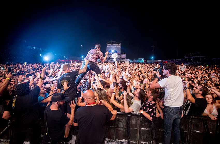 El concierto más esperado de la noche, y prácticamente del festival, vino a manos de los veteranos del synth pop New Order. Con un Bernard Sumner inesperadamente uniformado con la camiseta de Joy Division, irónico guiño al tema que tocan como bis en todos sus directos ‘Love Will Tear Us Apart’, los componentes se mostraron fríos y distantes en todo momento. Dejaron para el final ‘Bizarre Love Triangle’, ‘Temptation’ y la mítica ‘Blue Monday’ distorsionada por la apatía del cantante que incluso se evidenció al tratar de tocar la inconfundible melodía al teclado. Un pase directo al epicentro de la electrónica y el sonido guitarrero noise de los 80 que, aunque no alcanzó las expectativas, tampoco mermó las ganas del público de pasárselo bien.