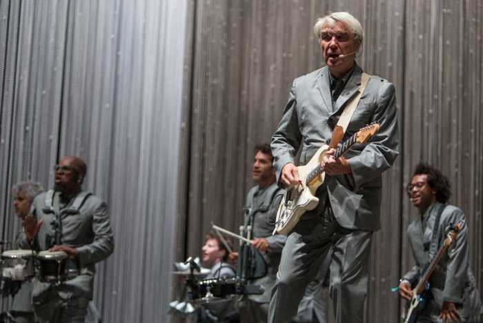El escocés -nacionalizado estadounidense- David Byrne siempre ha demostrado ir por delante por lo que respecta a experimentos musicales y diseño de espectáculos en directo, y su nuevo espectáculo ya lo dejó claro. Todo el escenario estaba vacío y diáfano, sin monitores ni nada que molestara y bordeado por una alta cortina de tiras que cerraban los tres lados de la escena. Al inicio, solo había una mesa con un cerebro encima. Puntualmente y para deleite de los muchos que esperaban bastante tiempo antes de su hora programada, apareció Byrne con un traje entre gris y azulado para cantar “Here”, de su nuevo disco “American Utopia”, con el cerebro en la mano, señalándolo y cantando: “aquí hay una zona que rara vez se utiliza, aquí hay un área que necesita atención…”. Para el segundo tema, “Lazy”, apareció toda la banda, ataviada con los mismos trajes que Byrne y deambulando por el amplio escenario. Bajo, guitarra, teclado y seis músicos más con percusiones de todo tipo, pero con sus instrumentos colgados para darles facilidad de movimiento, además de dos coristas-bailarines. Así que cada canción tenía una coreografía estudiada, distinta y especial. Para el tercer y cuarto tema “I Zimbra” y “Slippery People”, recuperados de Talking Heads, la locura ya era colectiva. De acuerdo que lo suyo es muy teatral y que cada actuación debe ser muy parecida, pero el efecto de cada canción y la original forma en que se desarrolla en escena, es excepcional, y más con un repertorio que recuperó hasta siete temas de Talking Heads, como las incendiarias “Once In A Lifetime” o “Burning Down The House”. Para muchos el mejor concierto del festival. M. A.