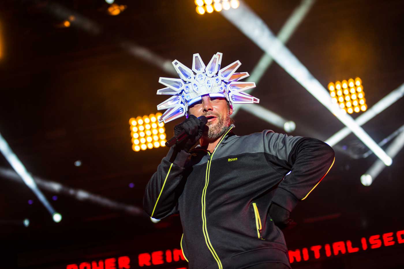 Muchos de los comentarios en el concierto de Jamiroquai iban sobre el chandal de Jay Kay, sobre si está mayor o sobre sus recientes problemas de espalda. Aquí no vamos a pararnos a señalar que la gente envejece con los años, porque los más observadores ya os habréis dado cuenta. El caso es que pese al estatismo vocalmente estuvo impecable, y greatest hits aparte los temas de su nuevo disco fueron lo mejor del concierto. Tanto “Shake It On”, con la que empezó, como “Automaton”, “Cloud 9” y “Superfresh” rayaron un nivel que varios de sus temas antiguos y sobre todo los desarrollos instrumentales, que amenazaron con sacar bostezos, no alcanzaron. El sonido no fue una maravilla, y quizás por eso los cortes más electrónicos acababan ganando la partida, pero lo compensaron con una segunda mitad de concierto sobresaliente y unos visuales que, sin ser especialmente elaborados, encajaban muy bien con el futurismo retro de los Jamiroquai actuales.