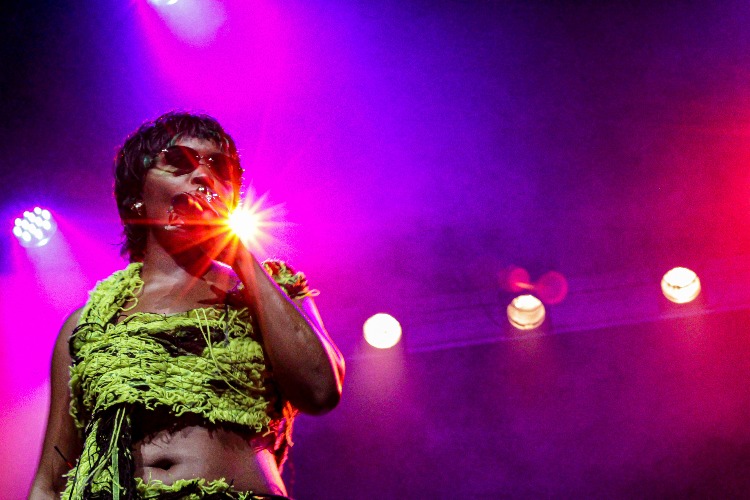 Si Scro de Cuia es el rey del kuduro, Pongo es la reina. Apareció en escena entre vítores y tomó la sala sin esfuerzo. El suelo retumbó desde el primer golpe y acompañada por dos bailarinas, un hombre a los coros y una DJ, activó un directo donde el portuñol funcionó como puente inmediato hacia un público completamente entregado. Su presencia escénica fue magnética: un vestuario vibrante, de texturas deshilachadas en verde neón, que amplificó cada movimiento y convirtió el cuerpo en parte del ritmo. Lejos de la dureza extrema de Scro, Pongo propuso otra forma de intensidad, más abierta y participativa. En “Wegue Wegue”, la pista se desbordó. Subió a gente del público al escenario, guió coreografías y transformó la pista de baile en un espacio compartido cuando sonó “Baia”. El baile se expandió en círculos y coros colectivos.