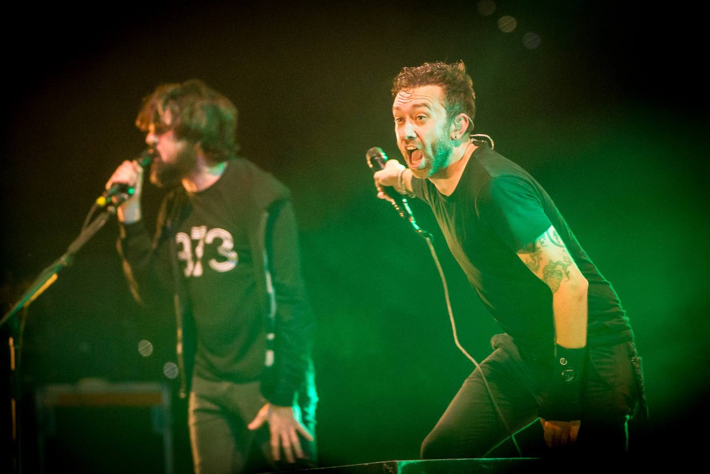 Pero entonces llegó Refused. A la hora esperada. Sin decoraciones, con unas tenues luces que iluminaban a los integrantes dejando la mitad de sus siluetas en la oscuridad. Empezó a sonar una intro pregrabada con mensajes políticos seguida de la potentísima “Elektra” de su nuevo disco “Freedom”.