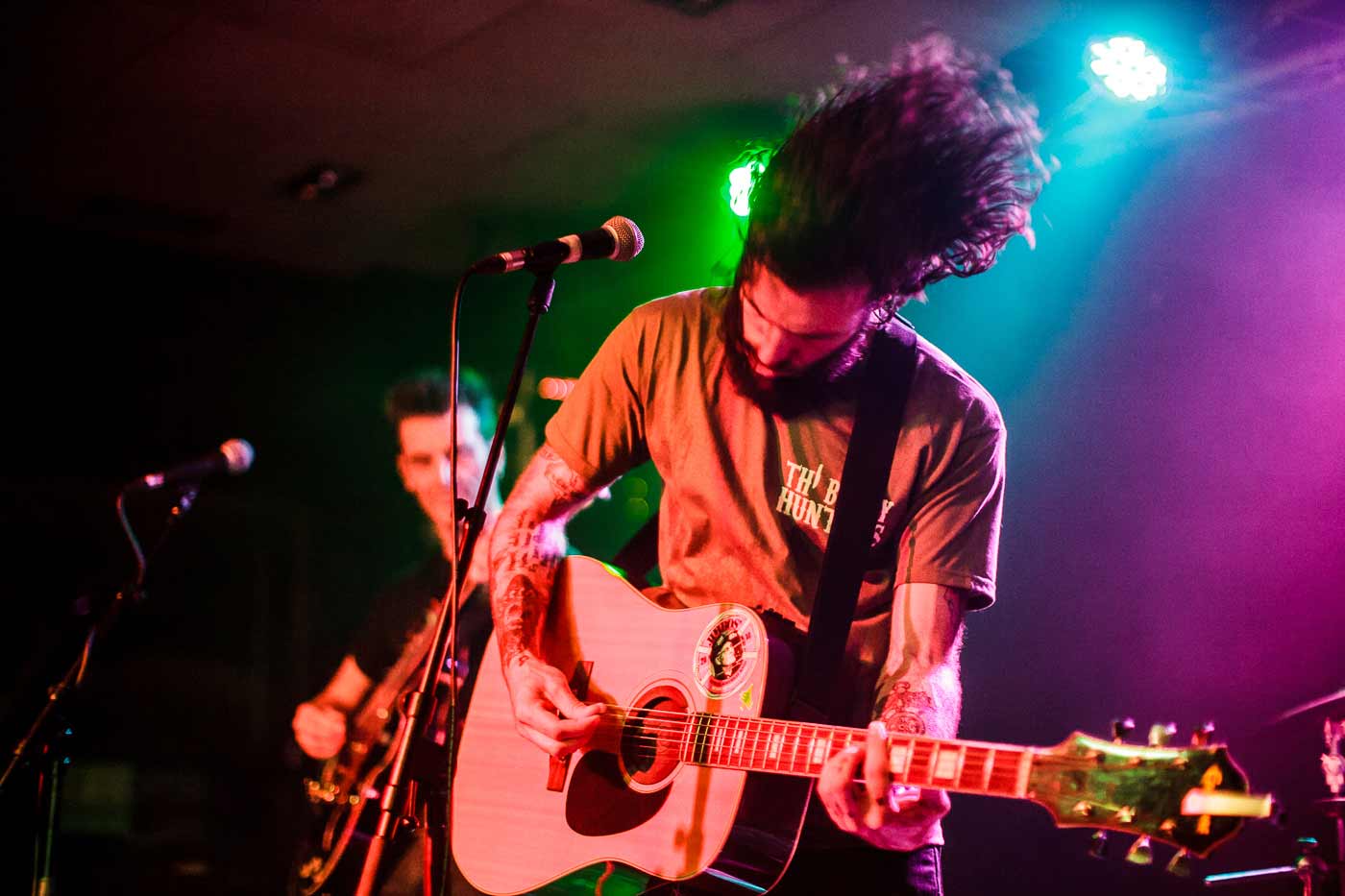 Sin tiempo para asimilar lo acontecido, sale el quinteto liderado por Matt Horan abriendo con “Drinking song” de su álbum debut “In Hell” (2013). Jugar en casa siempre tiene sus ventajas y el público estuvo entregadísimo desde el primer minuto. Los temas caían como moscas bajo los cañonazos del broncobilly que citan como su estilo. Una mezcla de country y rockabilly, donde se mezclan elementos distintivos de ambos estilos pero con un sonido y carácter muy distinguible y personal. Las canciones sonaron algo más aceleradas y enérgicas que en las versiones de estudio. Como un bronco desatado. Cortas pero intensas, solo interrumpidas para que Matt soltara alguna frase y arrancar con la siguiente canción.