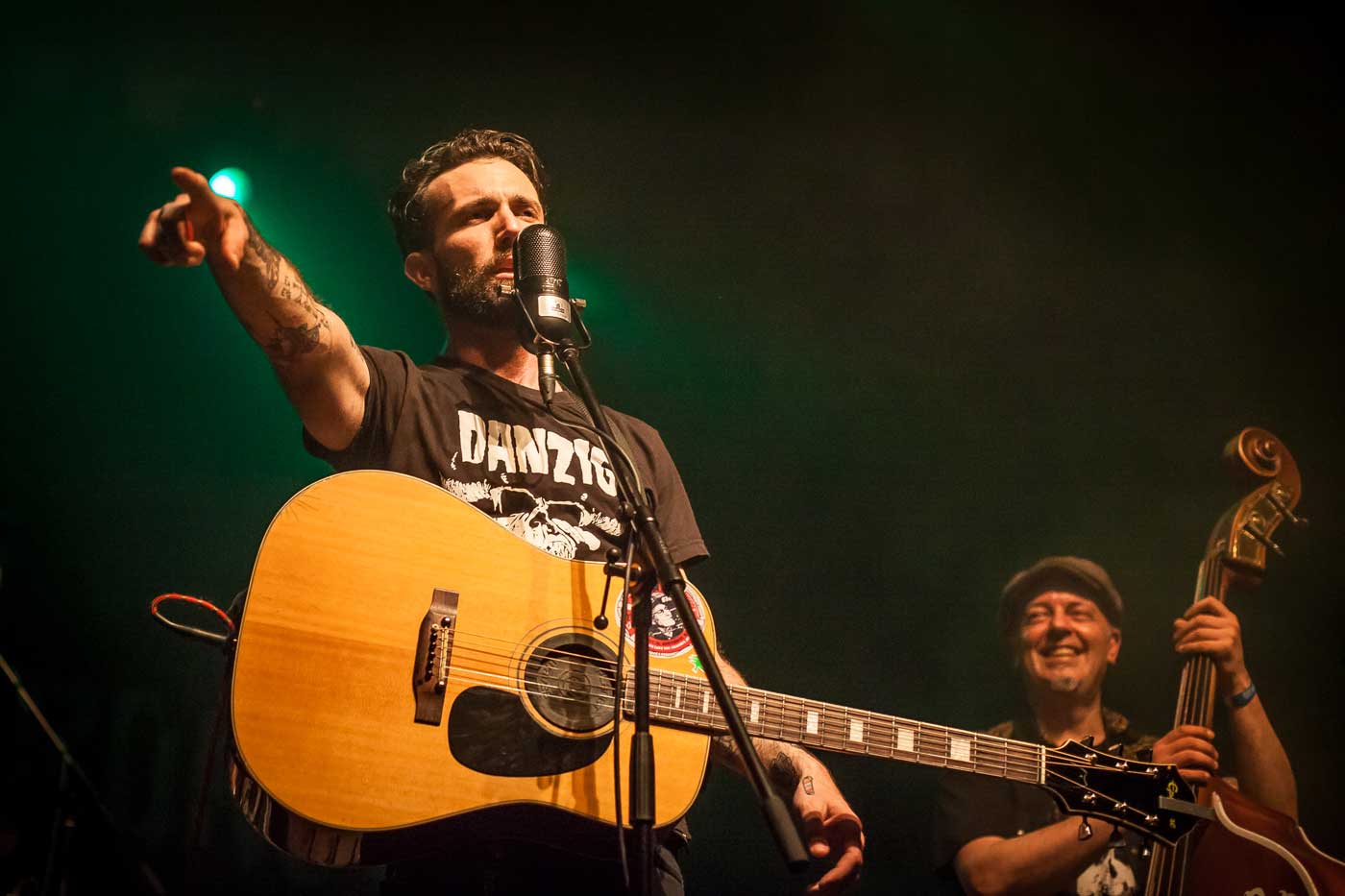No fueron las mencionadas la totalidad de las variadas pinceladas con las que vimos expresarse al grupo, todavía habría cabida para otras; alguna incluso realmente sorprendente, como la densidad casi grunge que se respiró en “Stop Killing All My Friends”. El tono oscuro, a modo de blues confesional lindando prácticamente con el gospel, se filtró en la paulatinamente más rotunda “False Hearted Love’s Blues” y un rockabilly meloso, a lo Stray Cats cuando adoptan esa tesitura, salió triunfante en “Big City Mama”. Hubo espacio también en su regreso al escenario para tirar de versiones, alguna casi obligada por aquello de la ya comentada vestimenta de Horan, como el ritmo clásico que contiene “I’m the One”, original de Danzig, o el punto y final para su adorado y admirado Hank III por medio de, y aunque antes ya había sonado la feroz “Hillbilly Joker”, “Straight to Hell”.