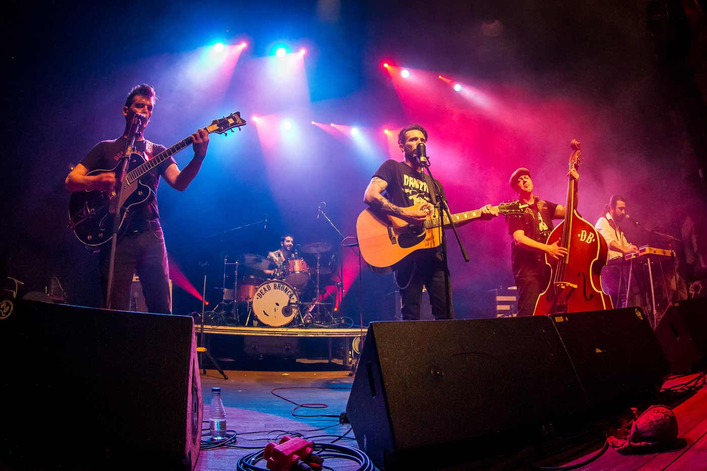 Se ha convertido en una tradición relacionar un concierto de Dead Bronco con una afluencia masiva de gente. Un hecho que es por encima de todo la prueba palpable del mérito que tiene lograr ese éxito popular partiendo de un sonido identificado, por mucho que luego se haga travesuras con él, con el country clásico. Aceptando que tienen imagen y que desprenden una actitud contagiosa sobre las tablas, por encima de todo, y lo más importante, es que poseen canciones, porque no nos engañemos, sin eso no hay nada sobre lo que poder edificar. Precisamente unas cuentas nuevas, y muy buenas, las que dan forma a su último disco, “Bedridden & Hellbound”, son la novedad que traían para su actuación en el Kafe Antzokia bilbaíno, un lugar siempre dispuesto a dejarse arrastrar por su huracanado espíritu.