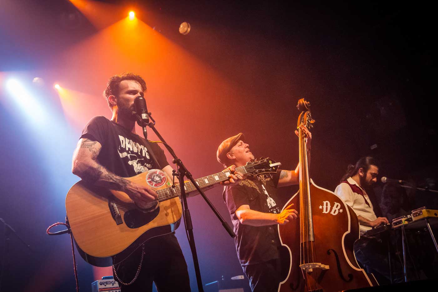 Una de las grandes bazas del grupo consiste en asimilar muy variadas influencias para hacerlas partícipe de su vital estilo. Sin duda, una de las primordiales nace del origen clásico de su propuesta, por lo que la representación más pura a base de honky tonk (y derivados) alcanzó sus momentos destacados con “Devil Woman”, “Drinking Alone”, la bella nostalgia de “Take Me Home”, o por supuesto la versión de uno de los intérpretes, recientemente fallecido, más representativos en este ámbito como Merle Haggard “Mama Tried”. Pero sí esencial resulta esta parte contenida y mayormente emotiva de la banda, no lo es menos su alma más punk e incendiaria, en la que Horan (no es casualidad la camiseta de Danzig que exhibía) puede (literalmente) desmelenarse, como sucedió con las siempre directas “Freight Train”, “Stupid Man” o la más reciente “Keg Stand”.
