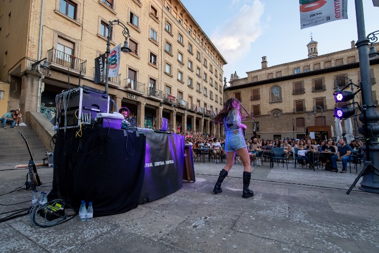 Con Salvi a las máquinas y Delaporte al micro y baile empezaron su espectáculo por medio de la ahora paradójica “Algo baila en mí”, con la que presentaron sus disculpas por venir “a hacer bailar” a una terraza del Zentral abarrotadamente sentada para la ocasión. No tardó en llegar “No dirás”, uno de los temas de "Titanas", ese álbum femenino recientemente estrenado que cuenta con las colaboraciones de Rozalén, Rigoberta Bandini, Amaral o la propia Rozalén, entre otras. Cierto es que aunque la escenografía era significativamente sobria, los Delaporte se aliaron con la acústica de la plaza, y por medio de un buen puñado de sonidos lanzados, alcanzaron una atmósfera envolvente desde el inicio del espectáculo.