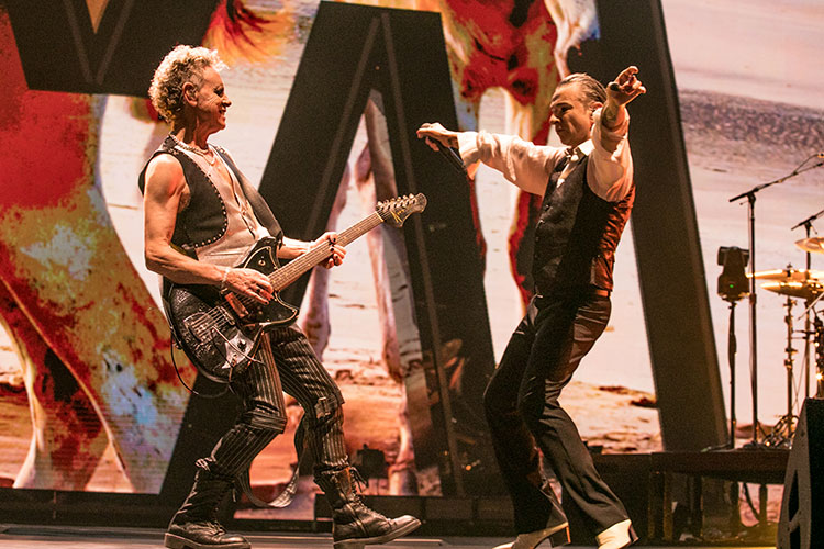 Pero menospreciar (aunque sea durante un instante) las capacidades de uno de los mejores frontman del mundo es inconcebible y a todas luces un error, y el espacio reservado para el (seductor) lucimiento de Gore –con sentidas interpretaciones de “Strangelove” y “Somebody”– marcó un punto de inflexión dando paso a la segunda parte del espectáculo. Ahora sí, Gahan regresó al escenario enchufadísimo, desatando la histeria con la sexualidad eléctrica, casi sodomizante, de una “I Feel You” que cruzó el espinazo de la audiencia. Se liberó así una bestia que guio el resto de ceremonia a su antojo, a golpe de contoneo y luciendo una ejecución vocal de otro planeta. Un tramo del concierto arrasador y apabullante en todos los sentidos, con “Behind the Wheel” (dedicada al compañero desaparecido), las tenebrosas “Black Celebration” y “Stripped”, la agresiva “John The Revelator” o esa explosión que fue “Enjoy The Silence”, con la bailaora Belén López y su zapateado mimetizándose con el himno en cuestión como cierre del grueso de la actuación.