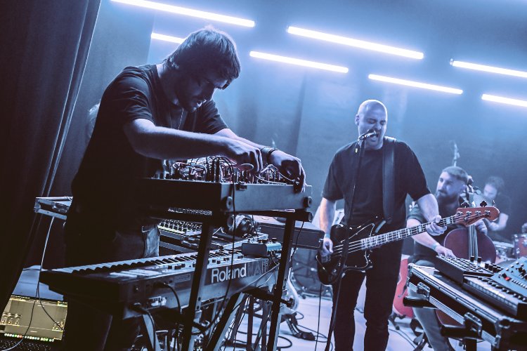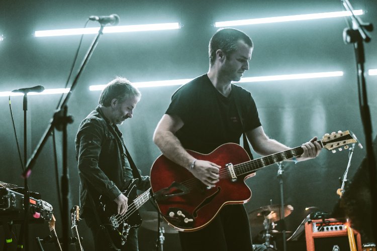 También se pudo entender como una odisea a tumba abierta en las profundidades y bonanzas de la música del siglo XXI, ese del que ya nos hemos comido casi un cuarto, sin que muchos aún lo hayan catado. Hablamos de materiales finos y nobles: rock alternativo, postrock, folk, electrónica, jazz..., cuyo origen nos llevaría muchas décadas atrás, pero cuyo desarrollo y evolución siguen pendientes y en carne viva, si se enfocan con el zeitgeist y la visión y afán de vanguardia requeridos. Forbidden Colours no pudo elegir mejor nombre, sus colores, (olores y sonidos) se cancelan cual si estuvieran prohibidos. Cerca de 400 asistentes se atrevieron a paladear el menú degustación preparado con esmero para la cita en el escenario limpio de Kafe Antzokia, presidido únicamente por tres filas de cinco barras de luz fluorescente que iban cambiando de color e intensidad.