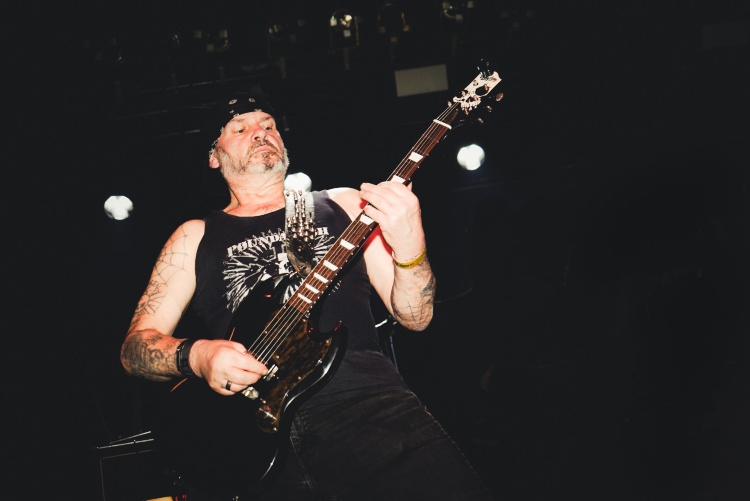 Con una sala ya repleta y caldeada por los dos conciertazos previos, era el turno de Discharge de cerrar la velada por todo lo alto, y vaya si lo hicieron. Manteniendo ese núcleo duro que forman Terry "Tezz" Roberts (ahora guitarrista tras haber pasado por el micro y la batería), Roy "Rainy" Wainwright (bajo) y Tony "Bones" Roberts (guitarra), los británicos no necesitaron más de una hora para desgranar a toda hostia y sin concesiones algunos de los temas que les han hecho entrar con letras sanguinolentas en la historia de la música popular, y que en la opinión de quien esto suscribe les encumbra como la banda de punk más grande de todos los tiempos. Si bien es cierto que la edad se nota ya en un “Rainy” Wainwright casi estático y un “Bones” Roberts que acabó el show completamente desfondado, el concierto se elevó a la excelencia por un sonidazo tremendo, una sucesión ya legendaria de hits (“Ain’t No Feeble Bastard”, “Decontrol”, “State Vioance, State Control” o temas más modernos pero igual de contundentes como “New World Order”) y la entrega y actitud de sus dos pilares en directo, el genial Tony “Bones” Roberts y el estadounidense Jeff “JJ” Janiak, su vocalista desde hace ya una década que insufla al show de Discharge de toda la energía que un set como el suyo requiere. Un bolazo tremendo con bien de sudor, pogos, saltos desde el escenario y esa electricidad tan especial que sólo las bandas realmente grandes son capaces de invocar. Leyendas muy vivas.