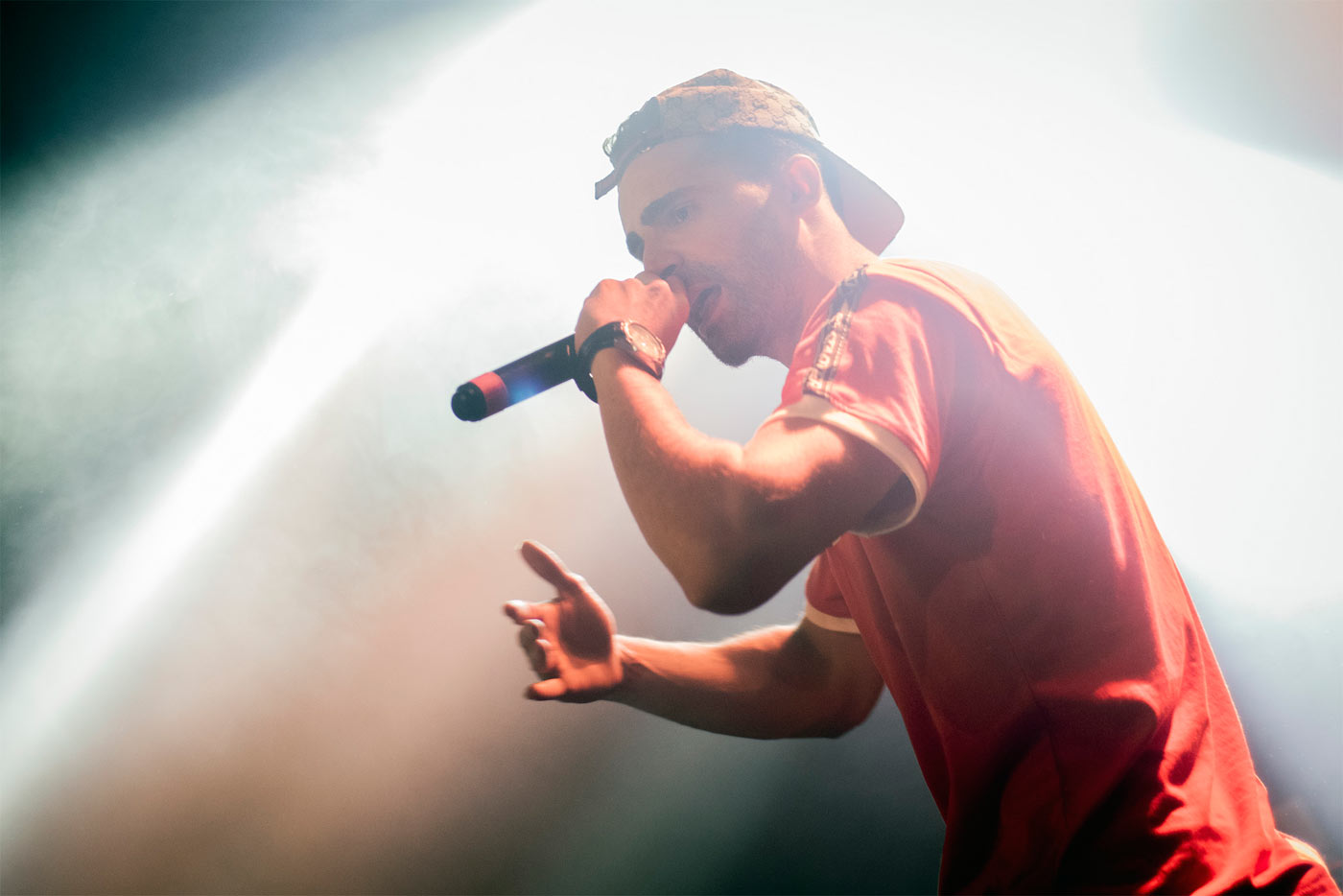 Tan ‘millenial’ como un público copado por adolescentes y posadolescentes, Hard GZ (foto inferior) fue la propuesta más sólida de la noche, tanto en lo lírico como en lo musical. Sobre bases de gran contundencia, el hip hop de Pedro Ruibal radiografió con mirada crítica el mundo actual y el universo personal de un artista que comenzó con temas como ‘Galiza Underground’, ‘2.000 clavos’, ‘Shameless’ o ‘Filosofía’. En ‘Libre’ se mezcló con el ruidoso público para darse un baño de masas y continuar después con ‘Birra, humo y reflexiones’ y ‘Cae la noche’, sin perder chance de recordar que el 23 de noviembre lanza ‘Versus’, su nuevo trabajo. El gallego regaló billetes con su efigie y varios álbumes físicos que algunos asistentes, hijos de YouTube y Spotify, contemplaron como si estuvieran frente a una reliquia prehistórica. La despedida llegó con la rabiosa ‘Postureo’ («¡La utopía no se vende!»), en la que los hermanos y hermanas de la audiencia invadieron el escenario para hacerse la preceptiva autofoto con el rapero.