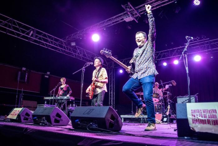 Casi sin tiempo para recuperarnos del espectacular concierto del cántabro nos encaminamos de nuevo a la Fábrica de Tornillos para disfrutar de la jornada de cierre de Ebroclub. El primero en salir a escena fue una leyenda escasamente valorada, por diversas circunstancias, de la música de nuestro país, El Hombre de Goma, el incombustible Micky. En esta ocasión acompañado por Los Colosos del Ritmo, banda formada por miembros de Imperial Surfers y Five Canyons, entre otros. Como dijo el director Cecil B. Demille de las películas, “empieza con un terremoto y ve creciendo en acción”, y eso es lo que sucedió esa noche; desde el principio demostraron a los escépticos (que los había, muchos sufridores del síndrome “Cachitos”, el programa de La 2) que no se tienen 79 años y se sigue uno subiendo a un escenario si no tiene nada que decir. Pusieron a bailar a toda la sala rápidamente y entre recuerdos a compañeros de profesión, halagos a las demás bandas de la noche y a sus propios músicos, desgranaron temas de su reciente LP y versiones de canciones menos conocidas desde los años 60.