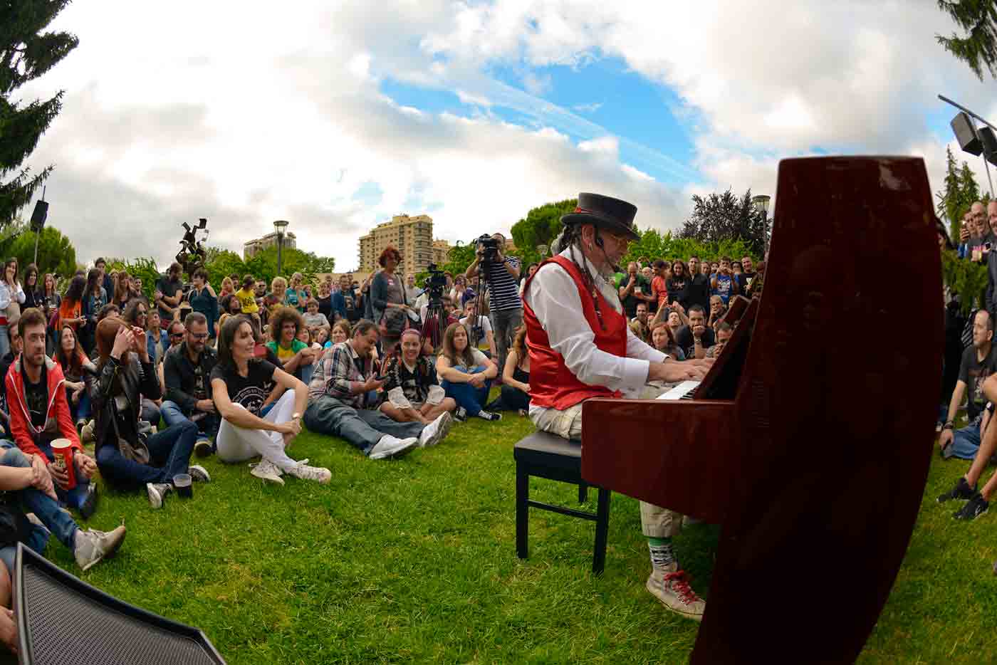 Ya desde la mañana del sábado se notaba un ambiente especial en Pamplona; mucha gente venida de otras ciudades paseaba por las calles con camisetas de El Drogas o de su antigua banda, Barricada. Media hora antes de que se abriesen las puertas de la Ciudadela, las colas para acceder al recinto ocupaban ya toda la Avenida del Ejército. Cuando por fin llegó la hora, El Drogas esperaba en el césped interpretando canciones en solitario, con su guitarra y su piano. La gente se arremolinó a su alrededor, sentada sobre la hierba a un metro de distancia del artista.