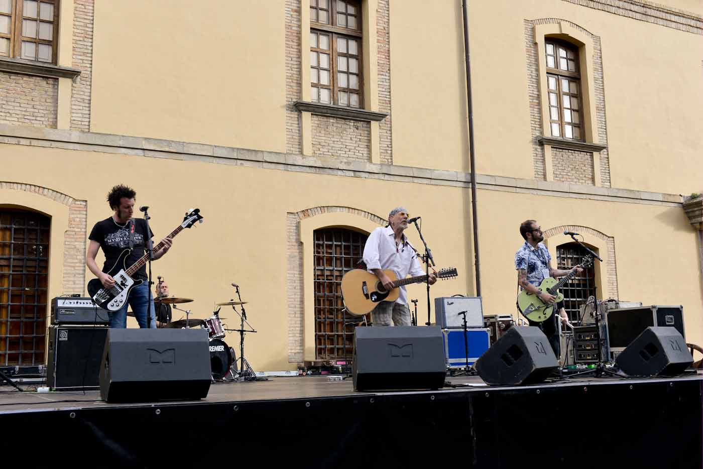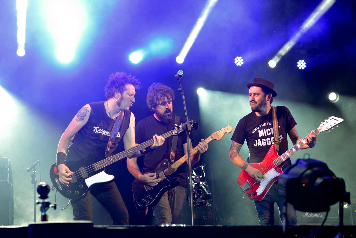 Tras este aperitivo, El Drogas se dirigió hacia el segundo escenario cual flautista de Hamelín, con cientos de personas siguiéndole. Allí le esperaba su banda (Brigi Duke en la batería, Txus Maraví en la guitarra y El Flako Txarrena en el bajo), para revisitar los temas de “La tierra está sorda”, el último álbum de Barricada con Enrique en el grupo. Este espectáculo, que han bautizado como “Sombras que la luz grita”, es el granito de arena de El Drogas para recuperar la memoria histórica. Como bien dijo, el lugar era de lo más apropiado, pues en la Ciudadela se practicaron ejecuciones durante la Guerra Civil. Pudo verse alguna bandera republicana entre el público, que seguía accediendo al recinto mientras sonaban ‘La estancia’, ‘22 de mayo’, ‘Por la libertad’ o ‘Una lágrima en la arena’.