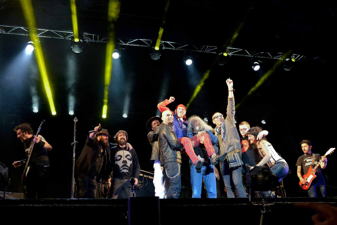 Nueve de cada diez psiquiatras coinciden en su diagnóstico: El Drogas sufre un trastorno crónico de incontinencia creativa. Así lo demuestra la infinidad de proyectos en los que se embarca, ya sean discos triples, libros de poemas o una maratoniana gira de conciertos de duración springsteeniana. El pasado sábado, para terminar la etapa de “Demasiado tonto en la corteza”, El Drogas y su banda (o mejor dicho, sus bandas) quisieron poner el colofón con un cuádruple salto mortal. El más difícil todavía: un macroconcierto de más de cinco horas en tres escenarios diferentes, con tres formatos y dieciocho invitados. Ahí es nada.