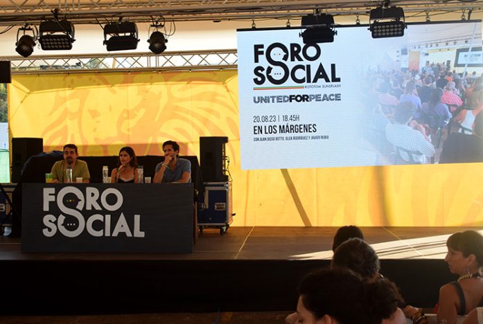 El lema “United for Peace” vertebró como no podía ser de otra manera la programación del Foro Social de esta 28ª edición. El Foro Social es el espacio por excelencia que el festival dedica a la reflexión y activismo por los derechos humanos y la paz. La corresponsal especializada en conflictos Olga Rodríguez y el experto en geopolítica Jesús A. Núñez fueron los encargados de inaugurar el ciclo de debates con un diálogo en el que arrojaron luz sobre cómo se articulan y desarrollan las complejas relaciones internacionales de un mundo extremadamente complejo y globalizado como el actual.