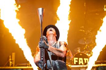 De la jornada del sábado destacó sin duda la puesta en escena de Deftones, con un Chino Moreno en plena forma y con un repertorio que se atreve con trallazos como “Head up” o “My own summer”, alguna nuevas como “Diamond eyes”, donde Chino aprovechó para darse un baño de masas cantando junto a a las primeras filas de fans, y otras clásicas en su set-list como “Be quiet and drive”, “Passenger” o “Change". Debido al excesivo calor, las inmensas nubes de arena que se levantaban y los empujones en las primeras filas la organización no tuvo más remedio que sacar unos aspersores de agua para refrescar un poco el ambiente y calmar los ánimos, ya que en canciones como “7 words” se originaron unos pogos bastante comprometidos a base de empujones y golpes que hacían peligrar la seguridad. Otros que se quedaron muy a gusto después de tocar fueron Soulfly, la banda de Max Cavalera lució una banderita brasileña en el escenario y soltó todo su poder con temas propios como “Back to the primitive” y varios de Sepultura como “Roots bloddy roots". Quienes también merecieron un vistazo fueron Alice in Chains, que presentaban nuevo disco junto a su ya integradísimo cantante William Duval. Piezas más antiguas como “Them bones”, “Man in the box” o “We die young” se ensamblaron con nuevas como “Sick my brain”, donde Jerry Cantrell (guitarra) también se atrevío a cantar llevando él solito el peso entero de la banda. Fue ya al final con “Would” y “Rooster” cuando se desató la vena nostálgica, los aplausos y el reconocimiento para una de las bandas estandartes del llamado en su día sonido grunge. Puede ser que Megadeth fuese uno de esos grupos condenados a tocar en un escenario pequeño cuando por derecho propio se merecían tocar para un aforo más amplio, de todas maneras Dave Mustaine y los suyos supieron estar a la altura para acometer canciones nuevas como “Head crusher” y otras míticas como “Symphony of destruction”. Por razones evidentes el plato fuerte del festival fueron los alemanes Rammstein que con un montaje espectacular dejaron obnubilados a todo el mundo sin excepción. Nada más arrancar el show cayó un telón negro que dio paso a una bandera alemana gigante tras la que empezaron a tocar “Rammlied”. No habían llegado a la tercera canción cuando empezó la pirotecnia a dar señales de vida con micrófonos a modo de lanzallamas, explosiones de todo tipo, cañones de fuego y un largo etcétera de efectos que adornaron canciones como “Waidmanns heil”, “Feuer frei!” o “Ich tu dir weh”. Hubo momentos del show un poco sobreactuados, como cuando Till Lindemann (voz) sepultó a Flake Lorenz (teclista) en una bañera que luego hizo explotar o cuando roció de gasolina y prendió fuego a lo bonzo a un pobre desalmado que apareció corriendo por el escenario con un traje ignífugo. Aun así hay que reconocerles que la puesta en escena es soberbia y que temas como “Du hast” o “Ich will” entran mejor con un poco de parafernalia industrial pero de la de verdad, además hay que destacar que todo el escenario estaba cuidado al detalle al igual que su vestuario y atrezzo. Poca falta les hacía disparar cañones de humo y lanzar fuegos artificiales por encima del escenario ya que gracias a las nubes de arena y el sudor de los miles de fans más que estar tocando en un festival al aire libre parecía que estuvieran haciéndolo en un garito gigantesco con la atmosfera perfecta. Como anécdota comentar que Rammstein fueron practicamente los únicos que no hicieron referencias al mundial de fútbol, ni corearon el tan famoso “Oe oe” con el público y ni tampoco dieron ánimos para el partido contra Holanda, debe ser que nos les hizo mucha gracia que España les eliminase en semis. Asi que otra vez será, o no.