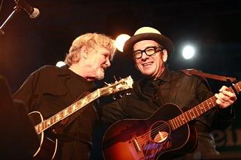 De todo lo que dio de si la pasada edición del Heineken Jazzaldia (que fue mucho y bueno. En septiembre podrás leer en la edición de papel de MondoSonoro una extensa crónica) sobresalió con especial fuerza el cierre oficial del festival, que tuvo lugar anoche en la abarrotada y coqueta Plaza Trinidad de Donosti. Dos mitos vivientes de la historia de rock, Elvis Costello y Kris Kristofferson, llegaban a la ciudad vasca para demostrar que aun tienen mucho que ofrecer. Y la verdad es que no defraudaron. El primero en aparecer en el escenario fue Kristofferson de 74 años de edad pero en buena forma, con rigurosa vestimenta negra a lo Johnny Cash que, acompañado tan solo de una guitarra, su armónica y esa voz rota por la vida, consiguió emocionar a todos los allí presentes. El suyo fue un concierto cargado de una fuerza casi mitológica, primero por ejercer de honesto azote al lado más oscuro de los Estados Unidos (lanzó dardos envenenados hacia Bush y Clinton, y a la dictadura Argentina de Videla, entre otros), y segundo al dejar claro que, una vez muerto Cash, Kristofferson es su heredero vivo más digno. Lo es por la cercanía, el carisma, y la verdad que respiró todo su concierto, un show donde combinó canciones nuevas, curiosidades como ese “Sandinista” en honor a Daniel Ortega, y clásicos como “Me & Bobby McGee", "Help Me Make It Trough TheNnight", o la muy emotiva "Sunday Morning Coming Down", canción que Cash y Kristofferson habían cantado juntos en más de una ocasión.