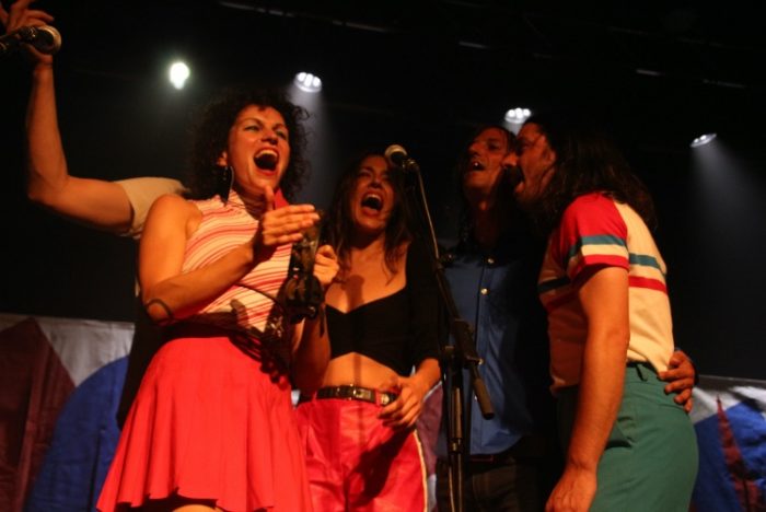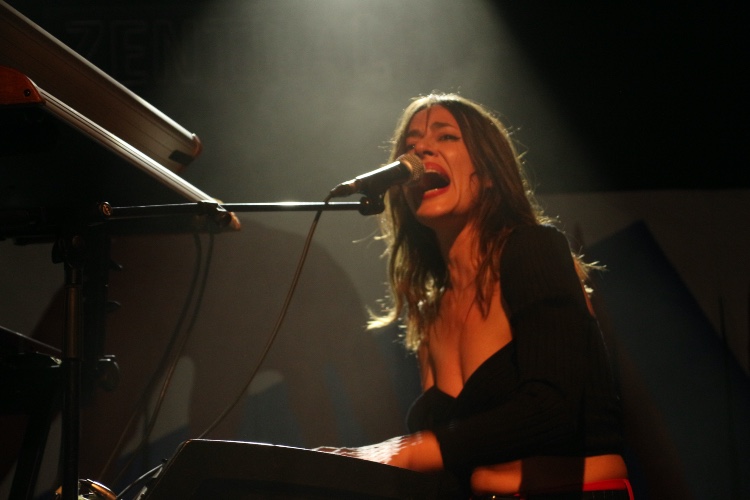 Lo primero que sorprende es la disposición en el escenario. Maika Makovski es un proyecto personal pero a la hora de llevarlo a cabo existe una democracia escénica que coloca a los integrantes de la banda de directo en una misma posición de primera linea, incluyendo la batería. La banda está formada por Maika Makovski, Mariana Pérez, Sam Bredikhim y Adrián Martínez intercambiándose batería guitarra y teclados y con Daniel Fernández a cargo del bajo. Completa la configuración escénica los colores blanco, rojo y azul de su último trabajo en un mural de tintes abstractos.