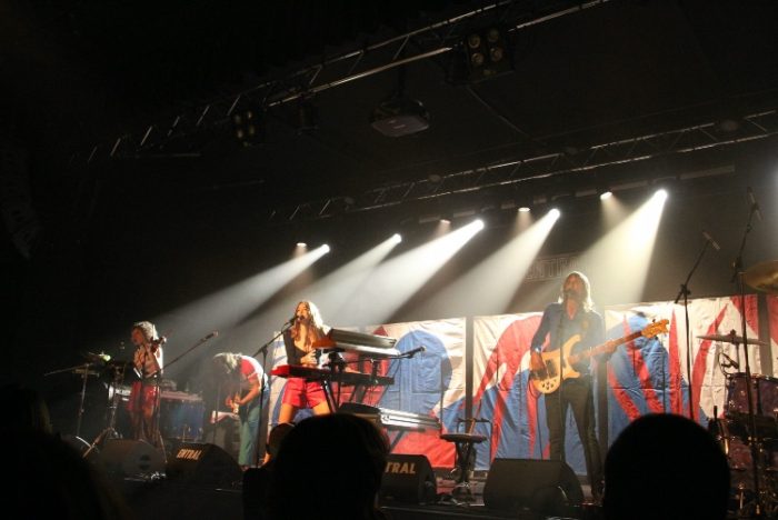 Los primeros compases de “Sacred Dirt” nos avanzaba un concierto de verso libre y gran intensidad. Continuaron con “Lava Love” , ese tema del trabajo homónimo del año 2010, ejecutado a dos voces que es una suerte que entre dentro del repertorio de esta gira de conciertos pues le añade al show la sonoridad bluesera y desértica. “Reaching Out To You”, el vertiginoso single de su último trabajo es un pelotazo que hace sobresalir el espíritu rockero e ingobernable de Maika y su banda mientras que “Purpose” nos lleva con el burbujeo de guitarras, voces y teclados new wave por los caminos de Devo. “Iron Bells” nos trae un gran ejercicio vocal y el cambio de papeles sobre el escenario, tónica que se repetirá en todo el concierto y que habla a las claras del virtuosismo de unos músicos bien acompasados en cada uno de los diferentes papeles . “Places where i used to Sit” que comienza con la artista cantando en solitario y a la que se le acaba añadiendo la banda es un remanso de aires sureños a lo Emmylou Harris que supone un descanso en la parte central del concierto ante una primera parte en la que ha reinado la agitación. “Only Innocence is Capable of Pure Evil” nos devuelve a un territorio de rock tribal. “Nevermore” da rienda suelta a las guitarras antes de asistir a una incursión en la opera-rock de Sparks y la dificultad de hacer una versión de “This Town Aint Big Enough For both of Us” y no salir malparados. El yodelismo a 6 voces de “Tonite” con todos los integrantes, como en las grandes familias country, cantando alrededor de un micro es un gran cierre antes del último bis con la alegría y diversión de