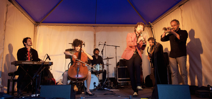 La orquesta de Nacho Mastretta volvía a la ciudad que le vio crecer para poner el broche final al ciclo Raqueros del Jazz organizado por el Pub Rvbicon, y también a las fiestas de la Calle del Sol. El caso es que el escenario colocado a pie de calle atrajo a una gran cantidad de gente de todas las edades. Porque uno de los grandes méritos de Mastretta está en conseguir que una propuesta tan compleja como la suya termine por sonar sencilla y accesible para todos. Estos siete artistas recrean sus canciones como si fueran juguetes sin instrucciones a los que se les pueden sacar tantos usos como permita la imaginación. Su sonido parte del jazz, aunque finalmente suene ajeno a las convenciones, como si su música proviniera de un lugar fuera del tiempo, que posiblemente sea ese Reino de Veriveri que da título a su último álbum. Es una música evocadora, que no necesita de muchas palabras para ser disfrutada: solo pusieron letra a “El último hombre del planeta”, ya en los bises. Tampoco estuvo Nacho especialmente hablador entre canciones; pero, ¿quién necesita palabras cuando, cual flautista de Hamelín, basta con el sonido de su clarinete para poner a toda la calle a cantar “Somos de Santander y aquí no hay más que hablar”? También fue un concierto en el que las emociones estuvieron a flor de piel, con un público repleto de viejos amigos y familiares de Nacho y hasta seguidores de su carrera desde los tiempos de Las manos de Orlac. Todo esto mantuvo a los espectadores en un mundo de ensueño ajeno a la realidad. Incluso ajenos a que mientras la música sonaba la selección había ganado el europeo de baloncesto. Y eso tiene mucho mérito, señores. Solo se me ocurre una detalle negativo: que Mastretta no se deje ver con demasiada frecuencia por estos lares. Hacía ya dos años desde su anterior actuación en Cantabria, y eso es demasiado tiempo. Aunque, servida en pequeñas dosis, su música se convierte en algo si cabe más especial, que se disfruta con mayor deleite.