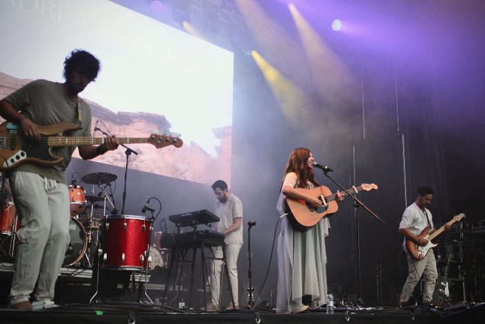 Con los últimos rayos de sol de la tarde del viernes en el horizonte, empezaba a sonar Andrea Santiago, que junto a su banda, crearon un ambiente íntimo que atrajo a los asistentes como polillas a una luz cálida. Detallada y precisa instrumentación, acompañada de alguna pincelada de guitarra eléctrica pulsada con arco, al más puro estilo Sigur Rós, junto a la etérea voz de Andrea, nos transportó a remotos parajes, como los de las Bardenas Reales, paisaje en el que la artista navarra se ha apoyado para ambientar su puesta en escena.