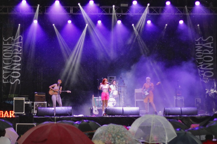 Acto seguido Ginebras entraban en escena. El joven cuarteto interactuó con el público desde el primer momento, contextualizaron cada uno de sus temas, hablaron sobre sus influencias y transmitiendo toda esa energía y buen royo que les caracteriza, consiguieron captar la atención de los allí presentes. Y es que el disco presentado en 2020 “Ya dormiré cuando me muera” está lleno de hits pegadizos, que se suman a su primer Ep, referencia con la que se dieron a conocer y que incluía su viral versión de “Con altura”. Esta dosis de pop simple pero efectiva se termino justo cuando la segunda ronda de lluvia hacia su aparición.