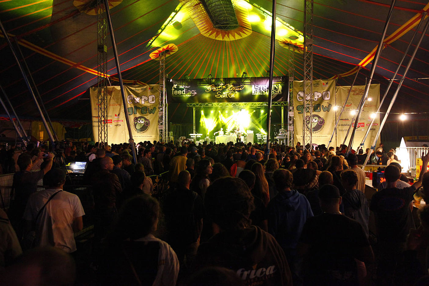 A las ocho de la tarde abrió la jornada de conciertos en el escenario principal DJ Don Cornelius, alias del conocido locutor de radio y dj Miguel Caamaño, empezó con Bob Marley, Peter Tosh y siguió con temas de roots jamaicano. Ambiente agradable, buen sonido, poco a poco la gente se iba acercando a la carpa de circo y con la puesta de sol su selección fue del roots al dancehall, pasando por el new roots e incluso hip-hop hasta el soul/funky. A las diez en punto sin apenas cambio en escena Don Camilo comenzó a cantar sobre las instrumentales que el sound system de Generation H iba mezclando. Voz potente y cálida, reggae roots e influencias ska, cantante de procedencia sudamericana y perteneciente al colectivo francés Generation H, en media hora de show demostró su talento, se atrevió con algunos temas incluso ragga/dancehall. A las 22:35h comenzó la entrega de premios de la IV Copa Cannabica ExpoGrow en la que se dieron los premios y trofeos a los mejores cultivadores presentados entre todos los stands.