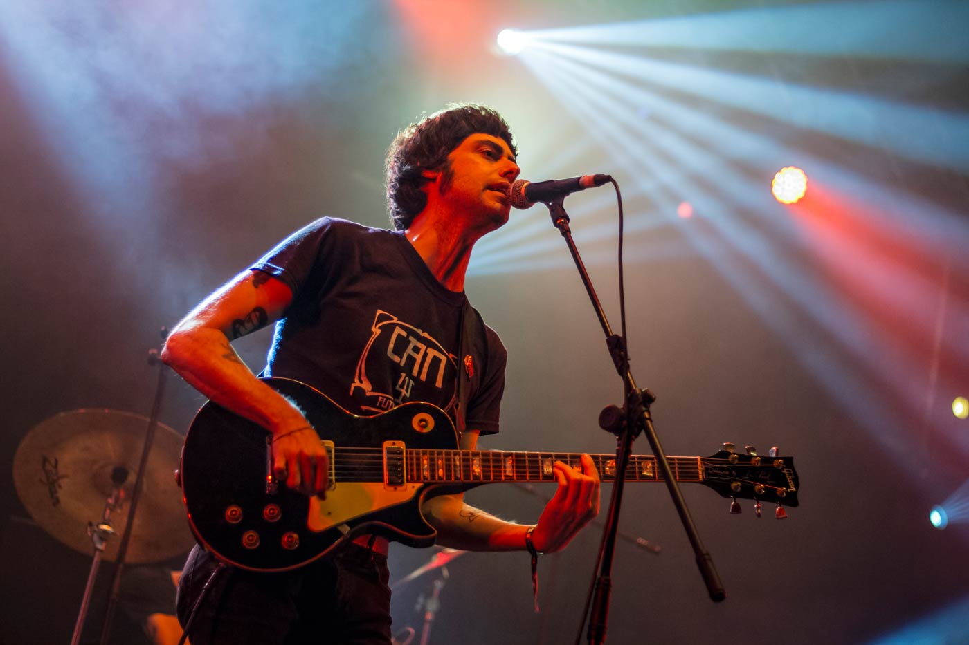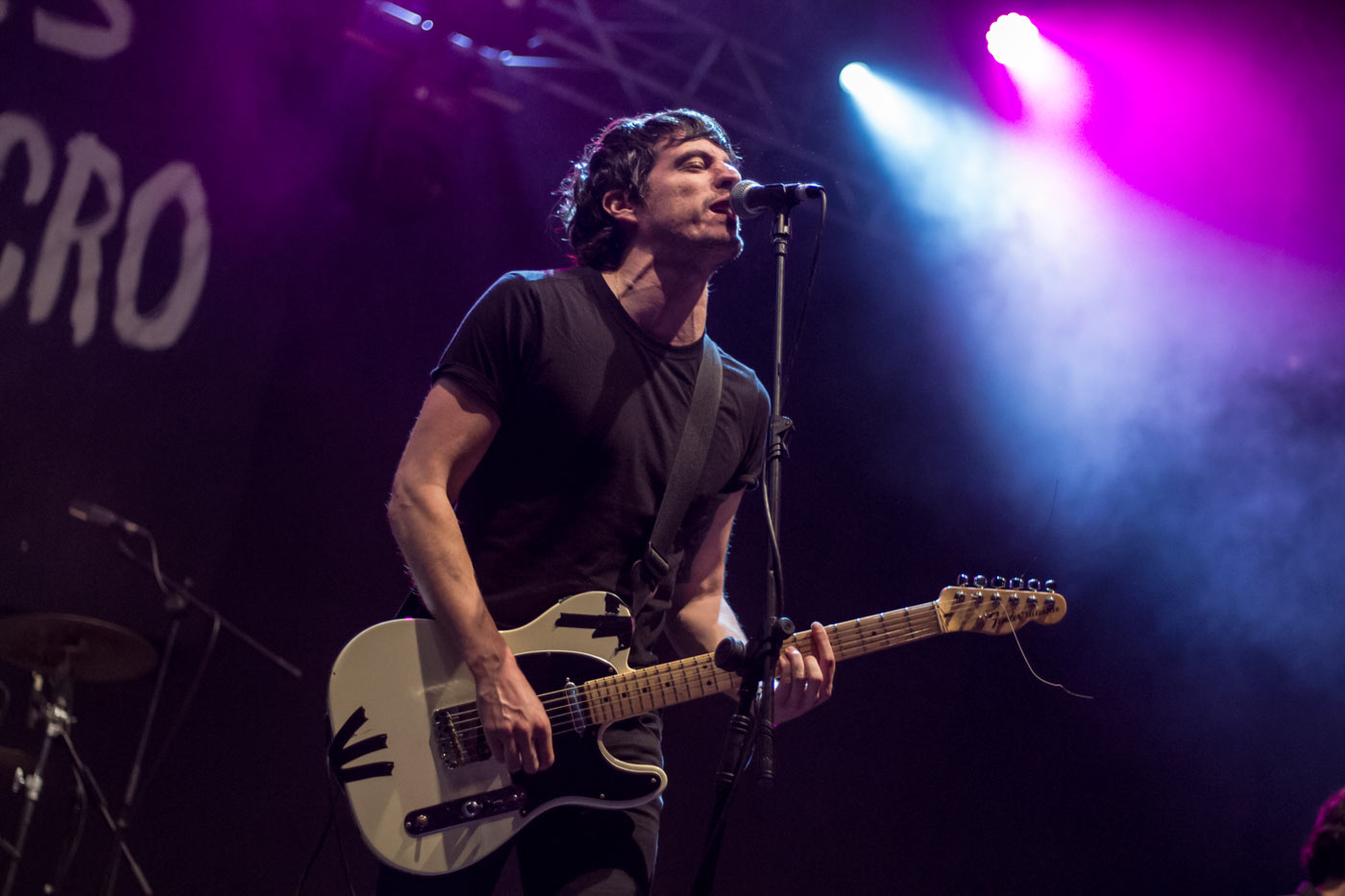 El papelón de tocar tras Berri lo tenía Biznaga (foto inferior) y si había una banda que podía llegar y mantener el interés de la audiencia con su rabia y potencia era el cuarteto malagueño-madrileño con su punk 3.0. La verdad es que Biznaga es una de nuestras debilidades entre las bandas de la escena estatal, nos apasiona su cóctel de influencias punk y rock, sus textos, mala baba y ritmos acelerados. Los tres cuartos de hora que duró su actuación pasaron como una exhalación con temas de sus dos discos. Arrancaron con “Cul de sal” enlazándola con “Brigadas enfadadas” y posteriormente pusieron la carne en el asador con “Fiebre”, “Divino fracaso”, “No pretendas escapar” o “Nigredo”, entre otras. Remataron la jugada en modo arrollador con “Los cachorros”, “Maquinas blandas”, “Una ciudad cualquiera” y “Mediocridad y confort”. Comentaban que igual se tenían que venir a vivir a Euskadi viendo lo mucho que tocaban por aquí. Por nosotros, encantados.