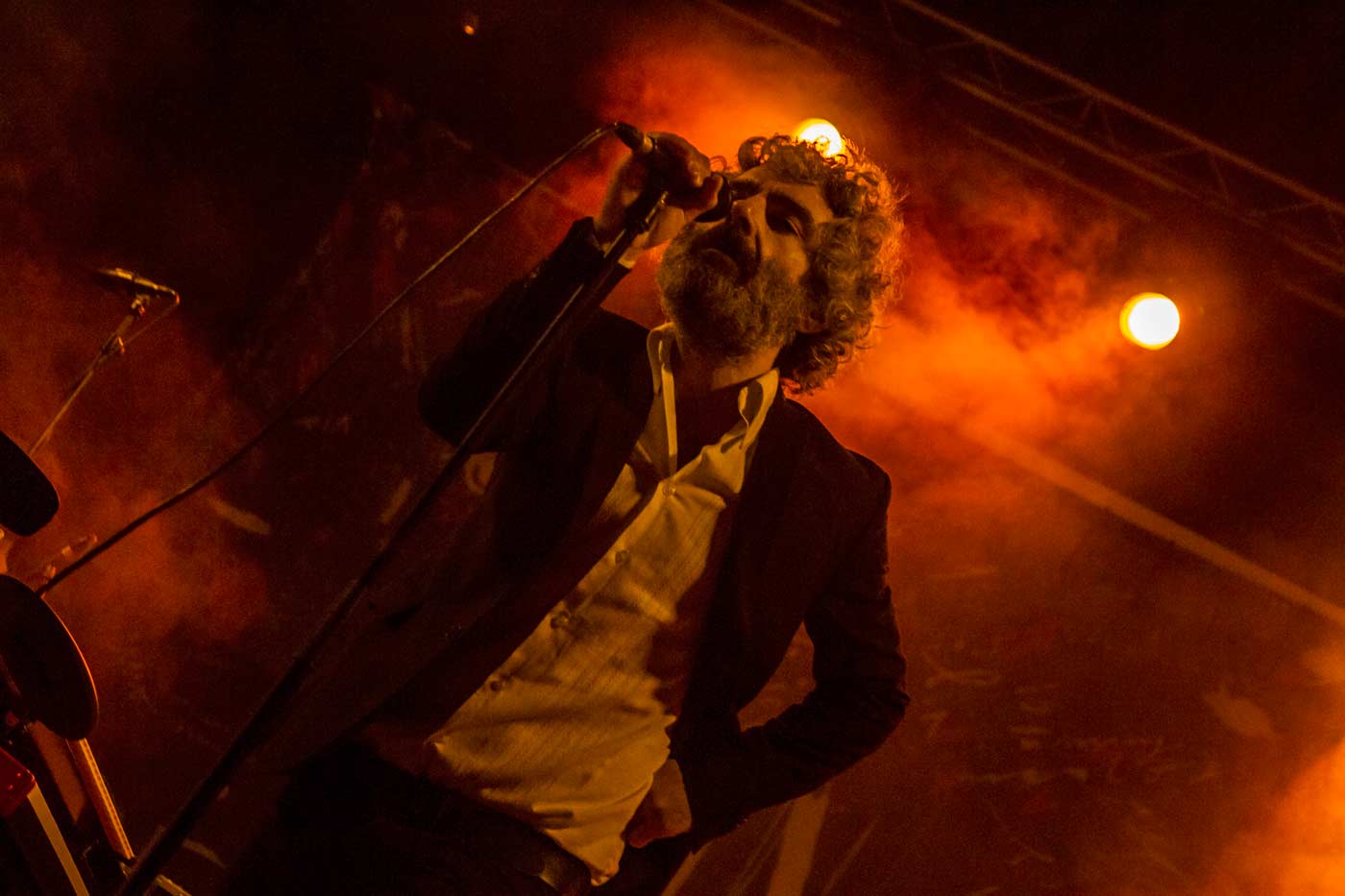 Los siguientes en cartel eran León Benavente (foto inferior y encabezado). Y, como si las bandas anteriores hubieran ocupado el rol de teloneras, de repente el sonido mejoró; dio un salto repentino en empaque y claridad. El cuarteto comandado por Abraham Boba llegó a Arnedo para presentar su reciente “2” (2016) y a ese trabajo dedicaron la mayor parte de la actuación. Arrancaron con “Tipo D”, “California” y “La Ribera” antes de retroceder a su excelente debut homónimo con “Ánimo valiente”, un himno al que siguieron otros cortes como “Revolución”, “El Rey Ricardo” o “Estado provisional”. Después, vuelta a “2” con “Gloria” o “Habitación 615” para concluir muy arriba con su mayor hit hasta la fecha: “Ser brigada”. Los “leones” demostraron que siguen en forma sobre el escenario y que exhiben un cancionero notable.