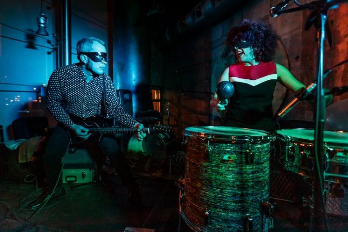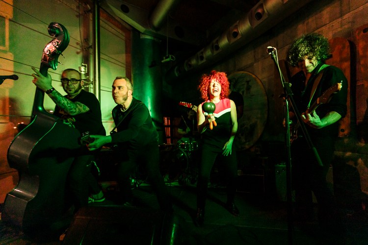 Los siguientes eran de casa, la representación vasca en la alternancia cantábrica, el dúo más irreverente de nuestras merindades, elegantes con máscara y sin ella, como saldrían luego al regalo conjuntado del final. Los Retumbes volvían al escenario de la Nave 9 para contribuir a esta fiesta que, como quizás sepas, debió haber ocurrido hace algo más de un año, pero los malos tiempos que se llevaron por delante al Mendigo de Baraka nos robaron también este festejo. Fieles y comprometidos como ninguno, que no solo se limitaron a aportar sobre el escenario, Ana y Andrés volvieron a azuzar al público, repasaron sus éxitos más recientes y los más consolidados – algunos convertidos ya en canciones populares – y ni se cambiaron al terminar, que allí siguieron en las primeras filas para disfrutar, como uno más del público, de lo que quedaba de festival. Combinando instrumentales con canciones de esas tan suyas, preñadas de frases ingeniosas y ácidas, triunfaron de nuevo con “Señores mayores”, “Las camisetas de Los Ramones”, “Tatuaje de mierda”, “Más meneo” – casi se le podría otorgar el título de himno acuñado de las Farras Bizarras –, “Eres idiota” – que siempre será una invitación a mirar de reojo a tu amigo y chincharle con el estribillo – o “Montañas de Lindano” – guiño final a su brillo fabril. Con un aire definitivamente más punk y feroz, pero sin olvidar el surf y los años 60, consiguieron encajar un repertorio muy largo en algo menos de una hora. Estuvieron, además, bien acompañados. Y hablo, esta vez, de esa pareja que se disfrazó de Los Retumbes, creando un ejercicio de espejos que nos recordó que era carnaval y que daba igual, había que celebrar y abrazar la mascarada.
