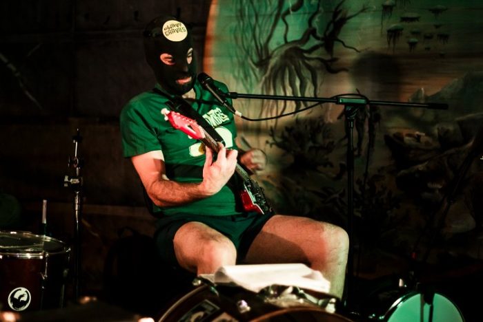 Voy por orden, empezando por el capitán (oh, mi capitán), que no se subió a la silla para recitar a Walt Whitman, pero se sentó en un taburete para darle al rock and roll a feira, a ese punk con pimentón dulce, a un garagiño sin aderezos ni atavíos. Con su Burns bien espoleada con la zurda y dándole con el pie fuerte al bombo, el capitán encapuchado se recorrió su viejo repertorio y las nuevas canciones que grabó hace poco en el barakaldés Dirty Analog Studios y que esperamos con ansia que encuentren salida pronto. Con una media en la cabeza y pantalón corto, vistiendo camiseta de Los Retumbes y adhesivo de Los Wavy Gravies en el frontis, arrancó haciendo gala de su cándida soltura: “Bueno, voy a empezar, la gente que está fuera… oye, puedo estar así todo el rato”. Y se refería al riff que andaba repitiendo mientras se presentaba, que se presentó: “Soy Nicolas Cage”, que no lo es, pero la broma era interna y Los Wavy Gravies la pillaron a la primera.